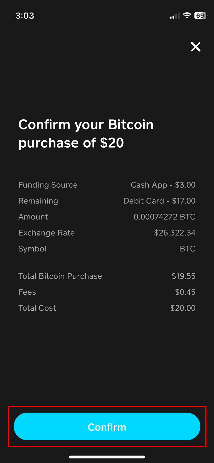 Cash App will finish the purchase, and you’ll have your Bitcoin in your wallet. If you don’t have enough money in your Cash App balance to cover the purchase, the app will pull the remaining funds from your linked debit card. This will be reflected in the purchase details, before confirming the transaction.