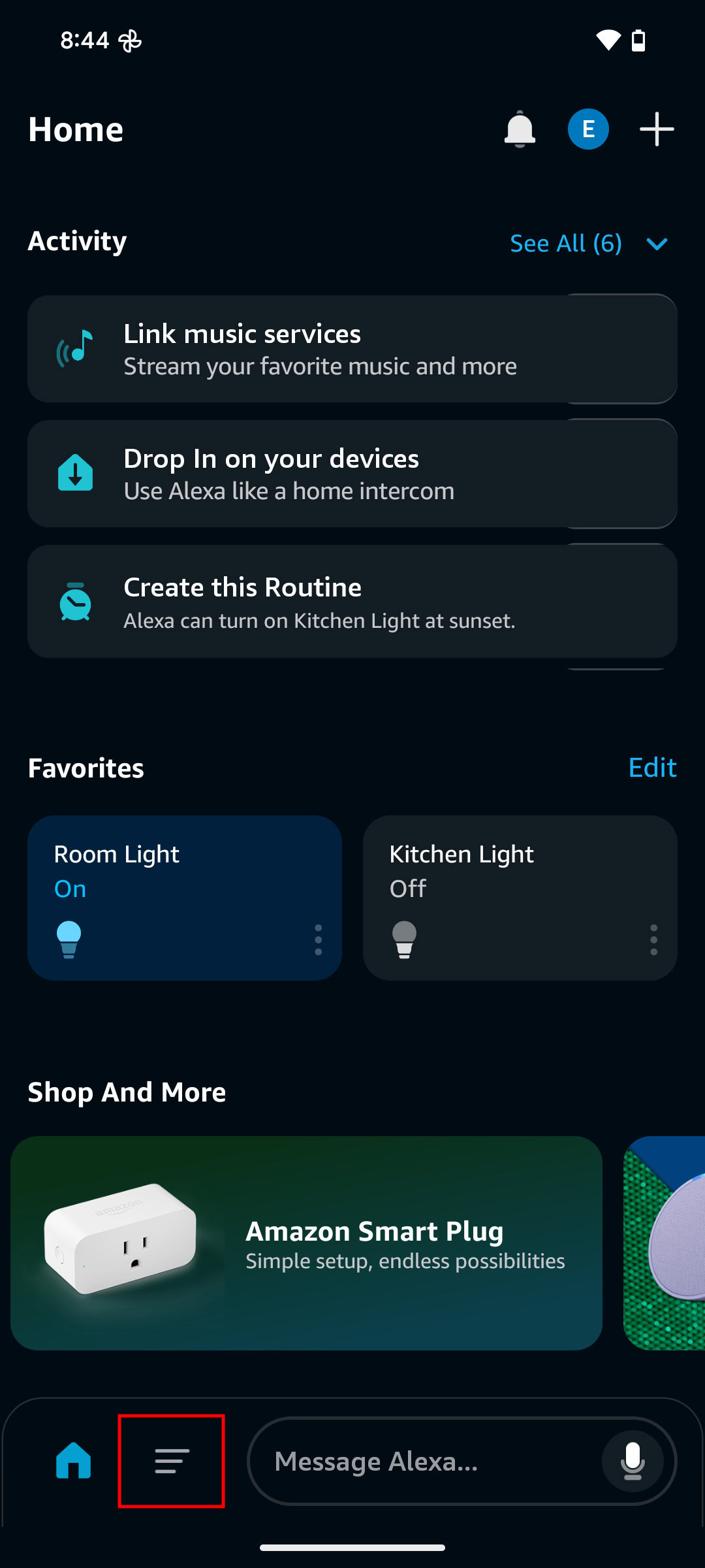 - In the Alexa app on your Android or iOS device, tap on the More button.