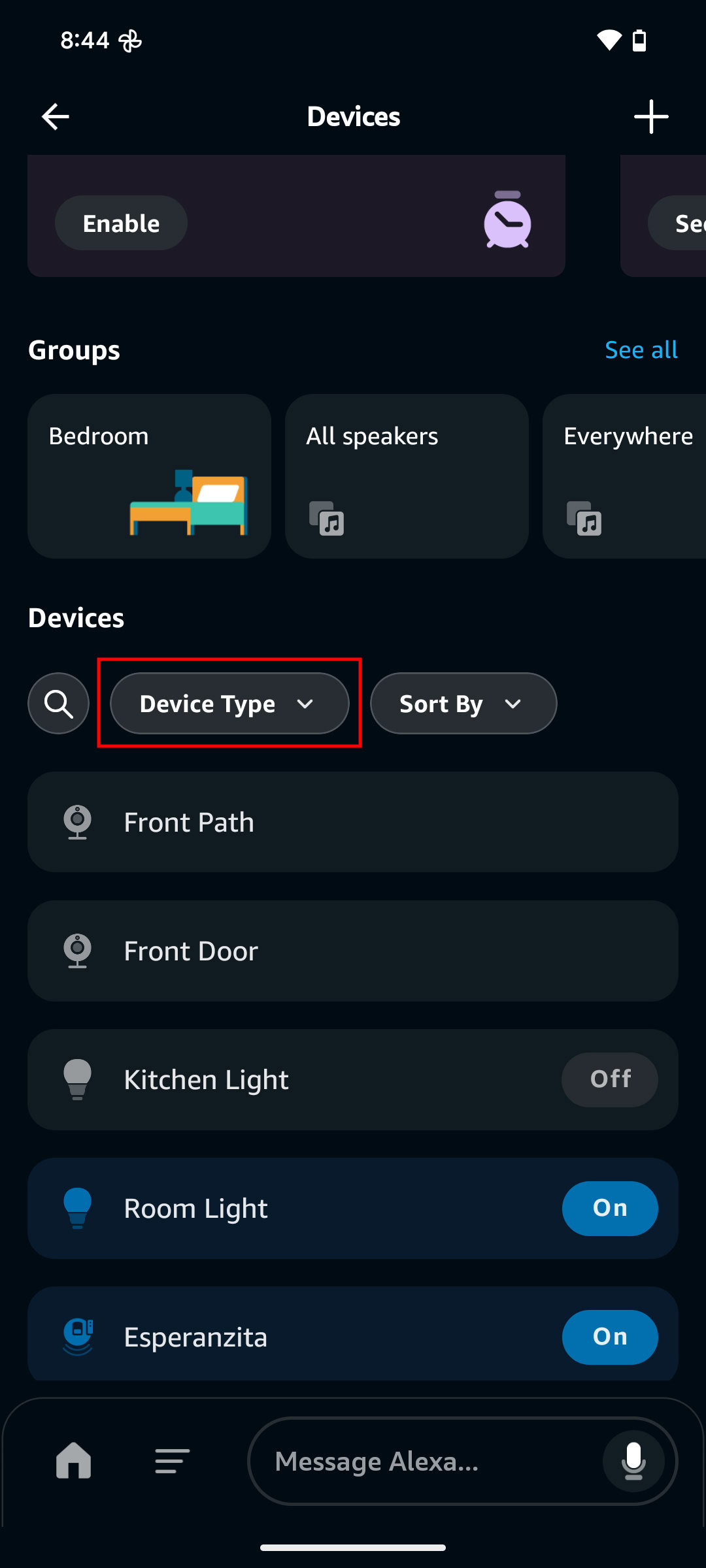 - Hit Device Type > Echo & Alexa > Apply, and then choose the speaker you want to customize.