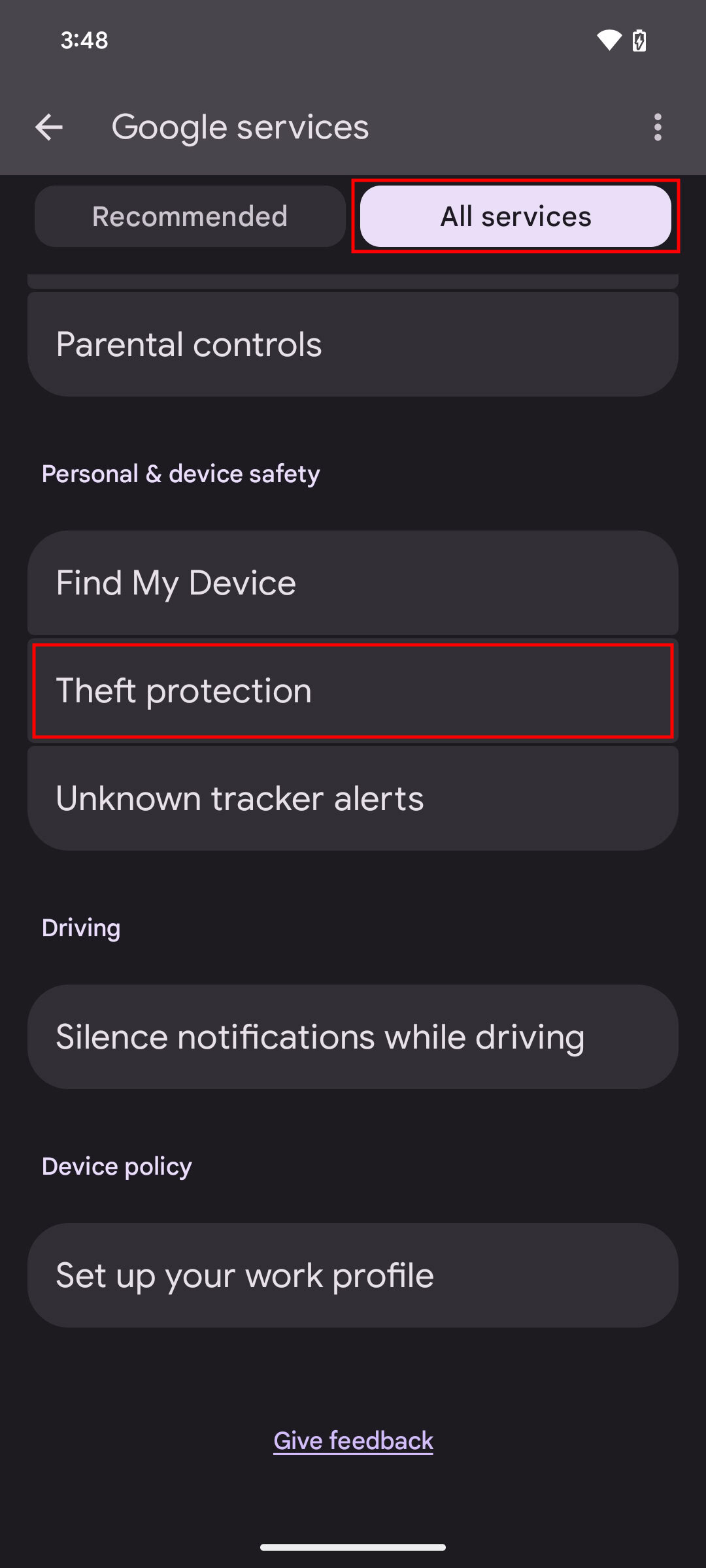- Select theft protection.