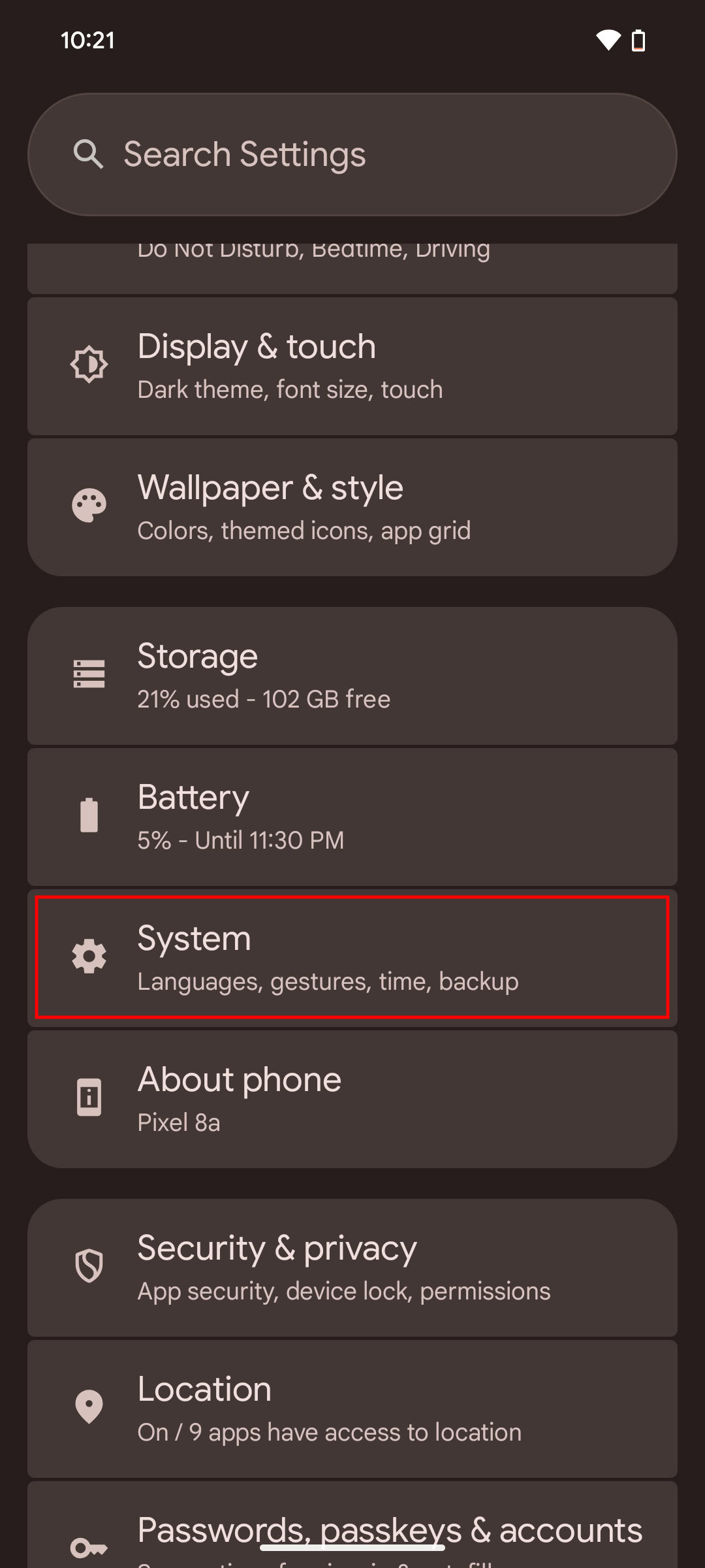 - On your Pixel phone running Android 15 or newer, launch the Settings app.