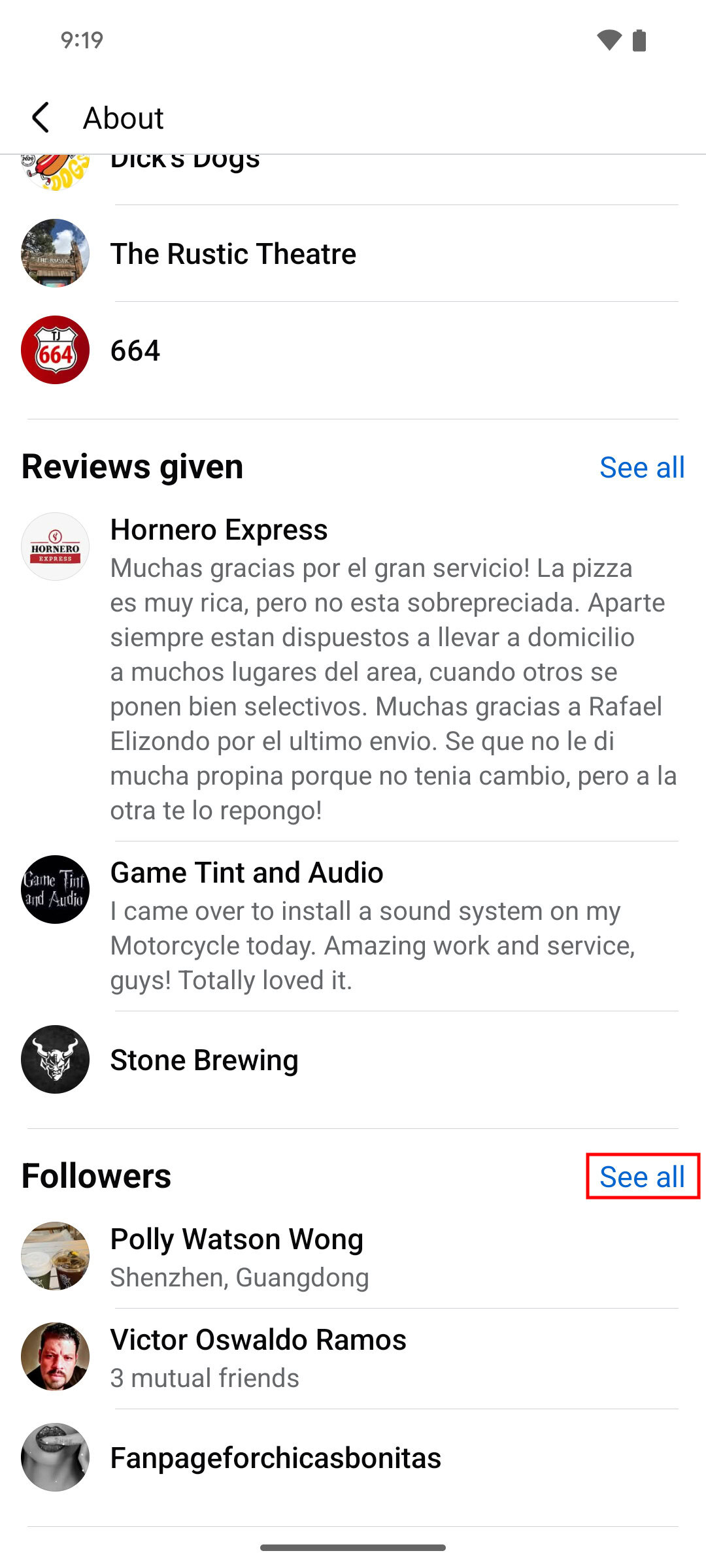 - Scroll all the way to the bottom. You will see a section labeled as Followers. Select See all, next to it.