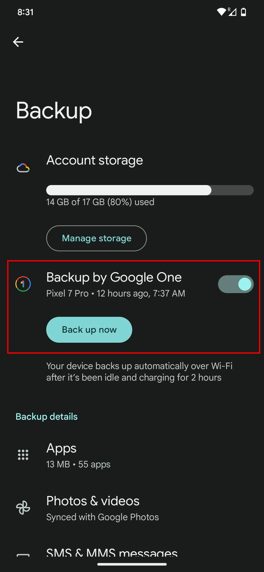 For non-Pixel devices, you’ll find these backup options under Settings > Google > All services > Backup.