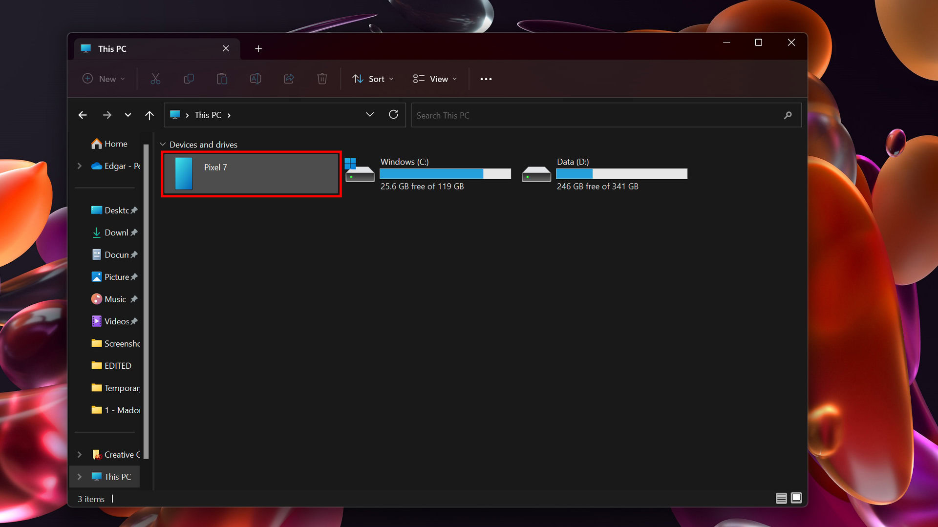 - Go to This PC on your computer and find your old device. Open the device folder.