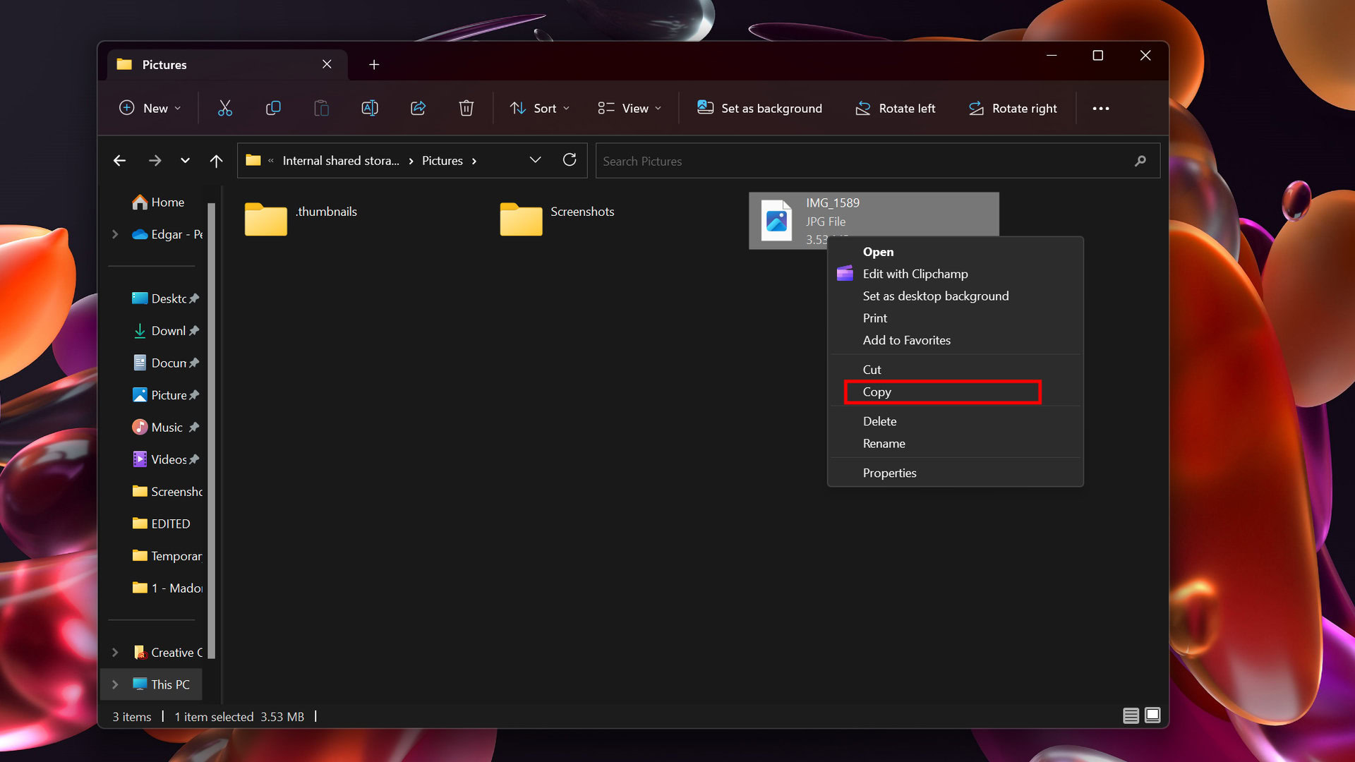 - You can now copy/paste any file you want. Copy them and paste them into a folder on your computer.