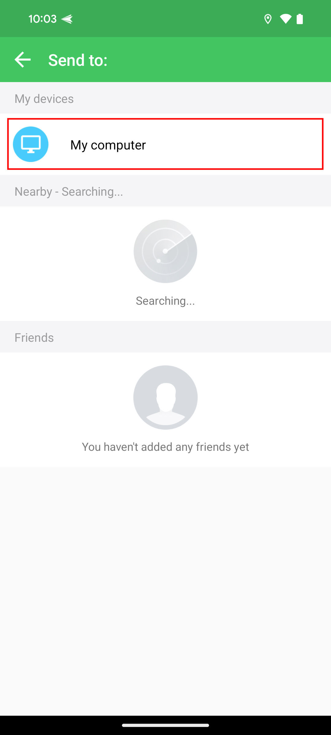 - Tap on the PC to which you wish to send the file.