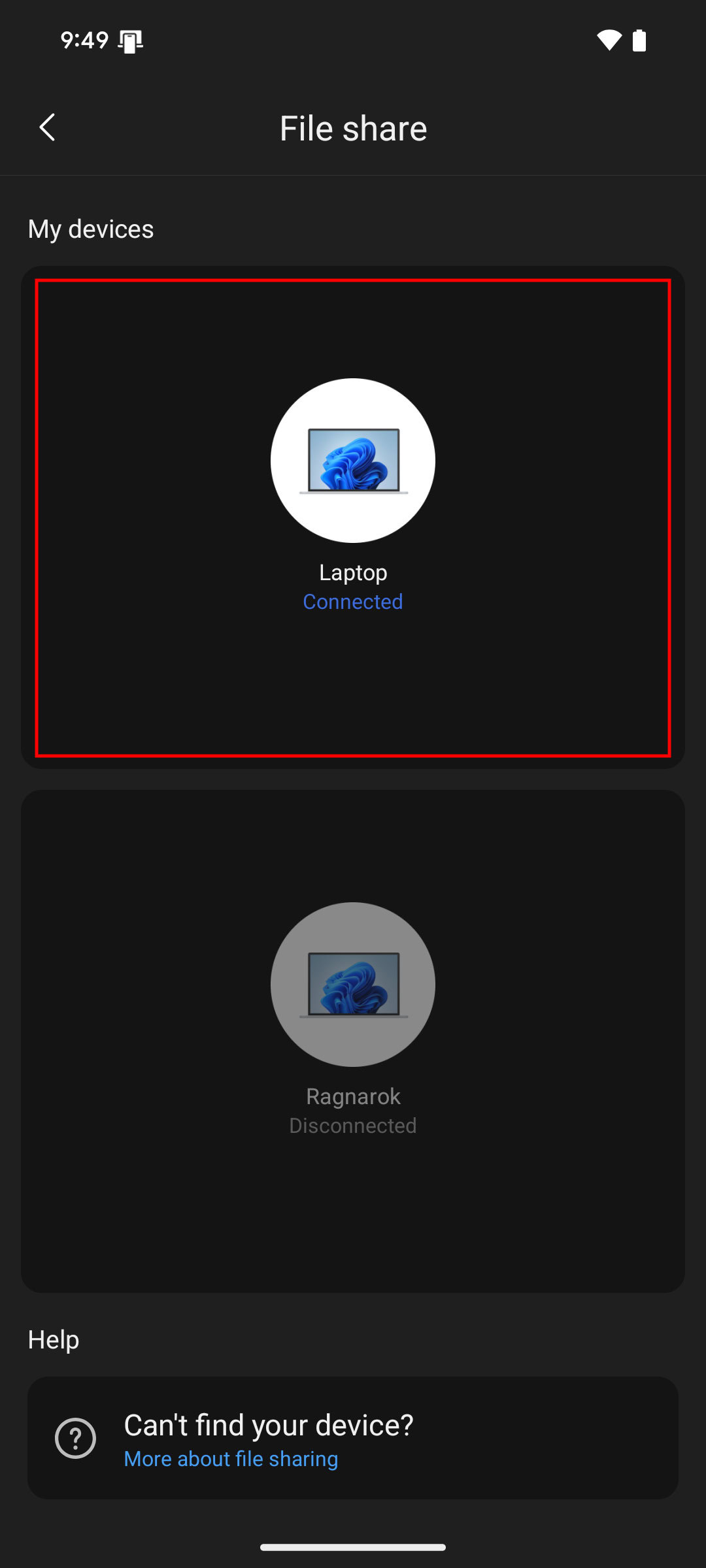 - On your Android phone, select your computer.