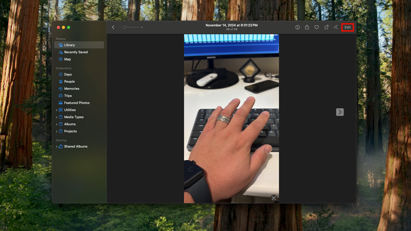 The Photos app also gets a couple of really nice improvements with Apple Intelligence. AI can help you find images by writing a description of what the photo depicts, for example. When you open the Photos app, just enter a description of the photo you want to find. For example, I used “photo of ring on hand,” and this is what I got: