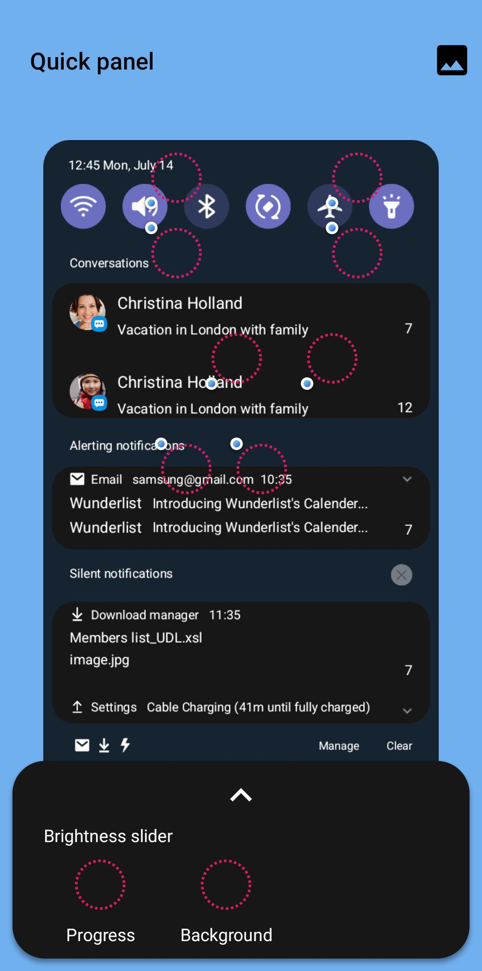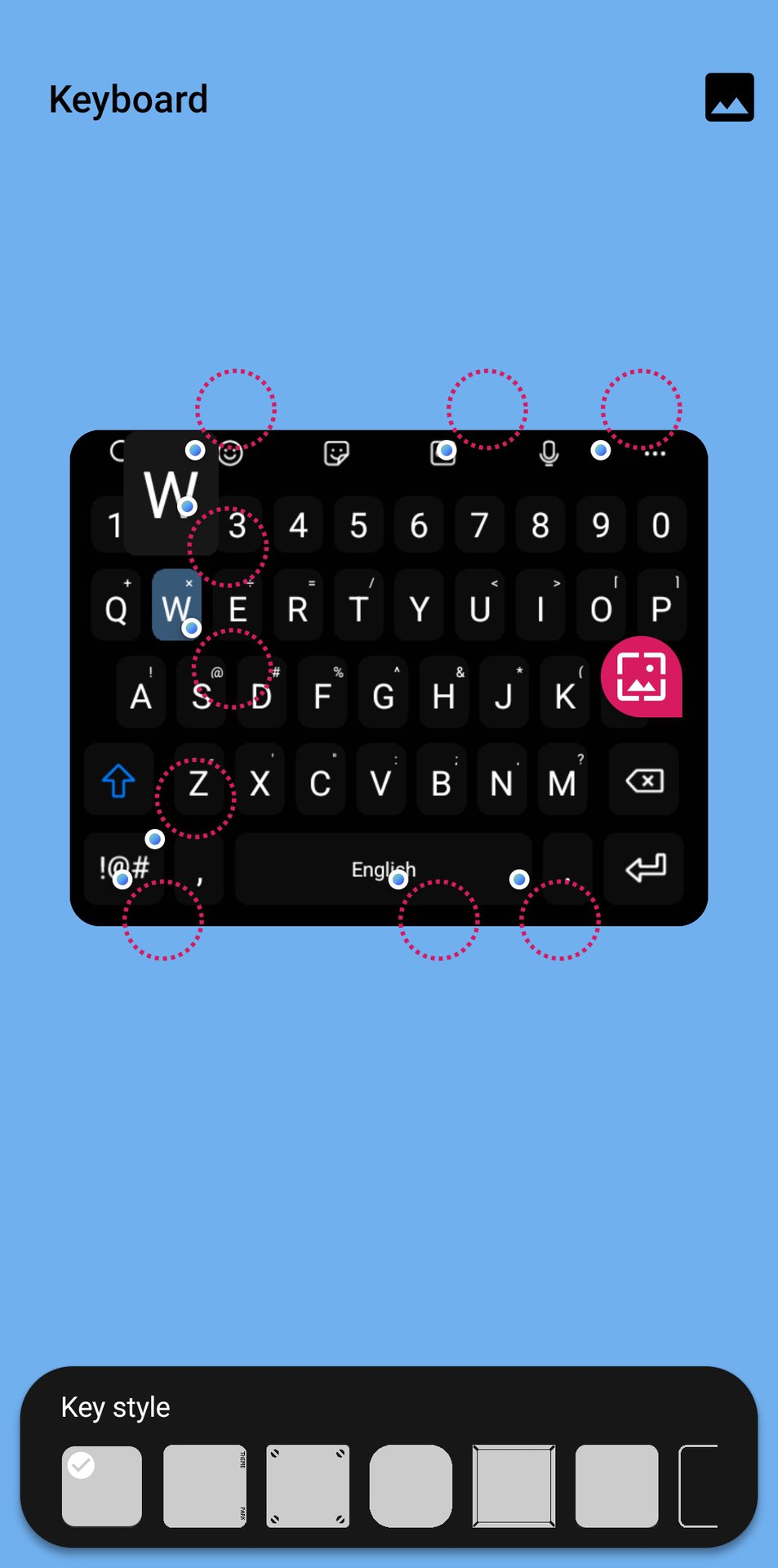 If you don’t want to create a whole new theme, you can go in and, from the panel at the bottom of the app’s start screen, switch from theme to one of the other options, including keyboard, quick panel, icon, and volume panel. Once you selected an item, press the Create new button to access its customization options listed above.