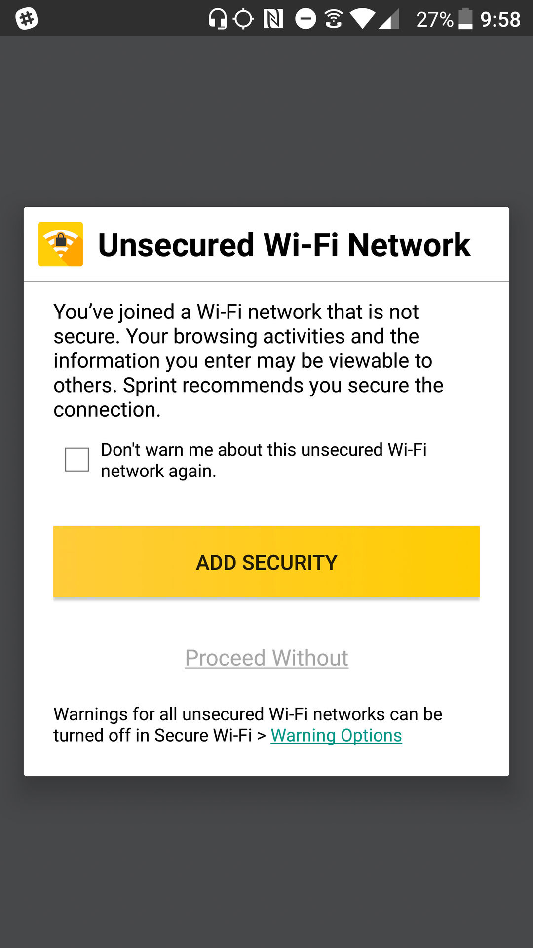 The intrusiveness of Sprint’s apps generally are a concern. For example, whenever you connect to a WPA2 protected Wi-Fi network, the Sprint Secure Wi-Fi app shows a pop up warning you about the insecure connection. The popup then proceeds to try to upsell you on a VPN service. This is almost always unnecessary for private WPA2 connections, but the larger issue is how unexpectedly intrusive the software is.