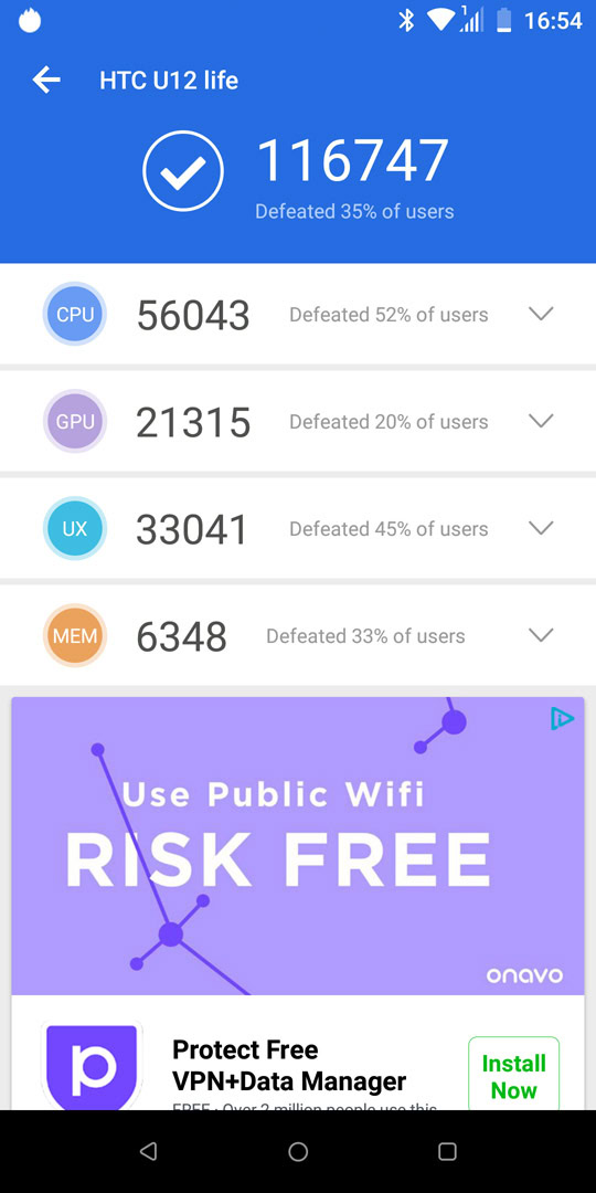 Despite HTC’s rather minimal software layer, the mid-range chipset and 4GB of RAM in my review unit just couldn’t push those pixels around fast enough when multitasking and putting the U12 Life through its paces. I wasn’t expecting OnePlus 6T levels of speed, but it felt more like I was using a HTCDesire 626 than a 2018 product. Avoid the U12 Life if mobile gaming is high on your hit list.