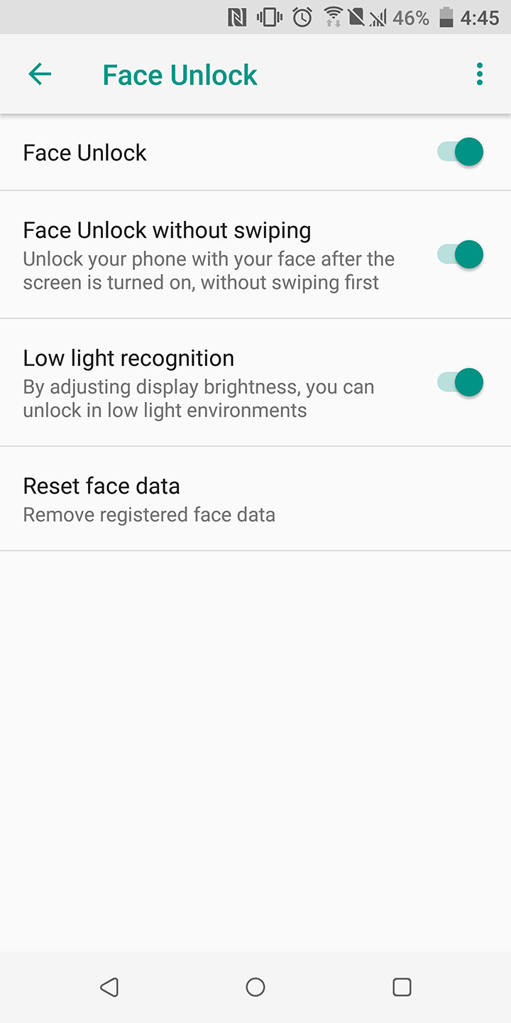 It’s 2018, so it’s no surprise to see HTCimplement its own face unlock feature. It is very fast. Like, once you glance at the lock screen, it’ll unlock almost instantly. There’s even a “low light” mode to help the phone recognize your face at night, but that requires making the display glaringly bright — not something many people will like when lying in bed.