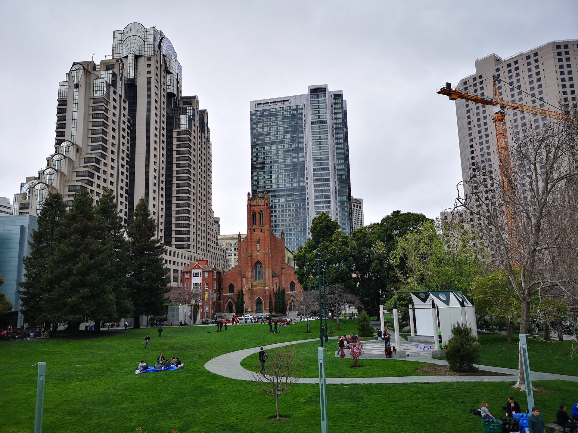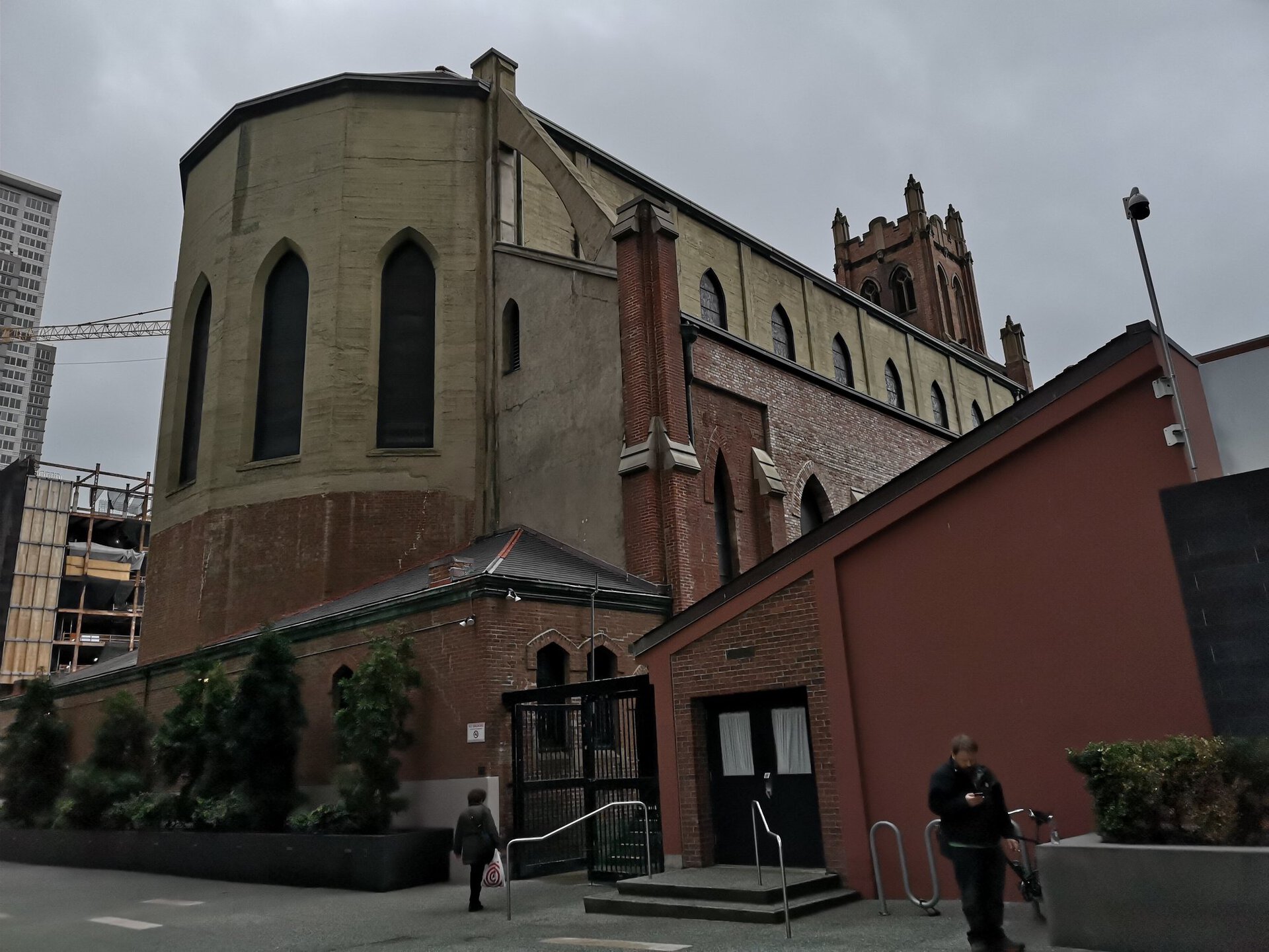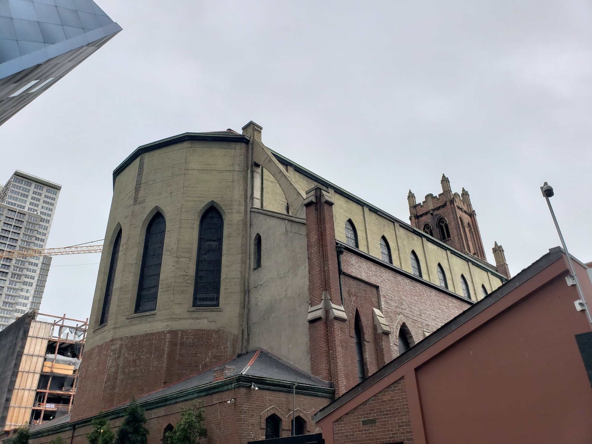 How does each phone handle a scene with a gloomy sky and a colorful and detailed subject? Our trip through Chinatown took us to this building with mosaics, graffiti, lanterns, fire escapes, and statues.