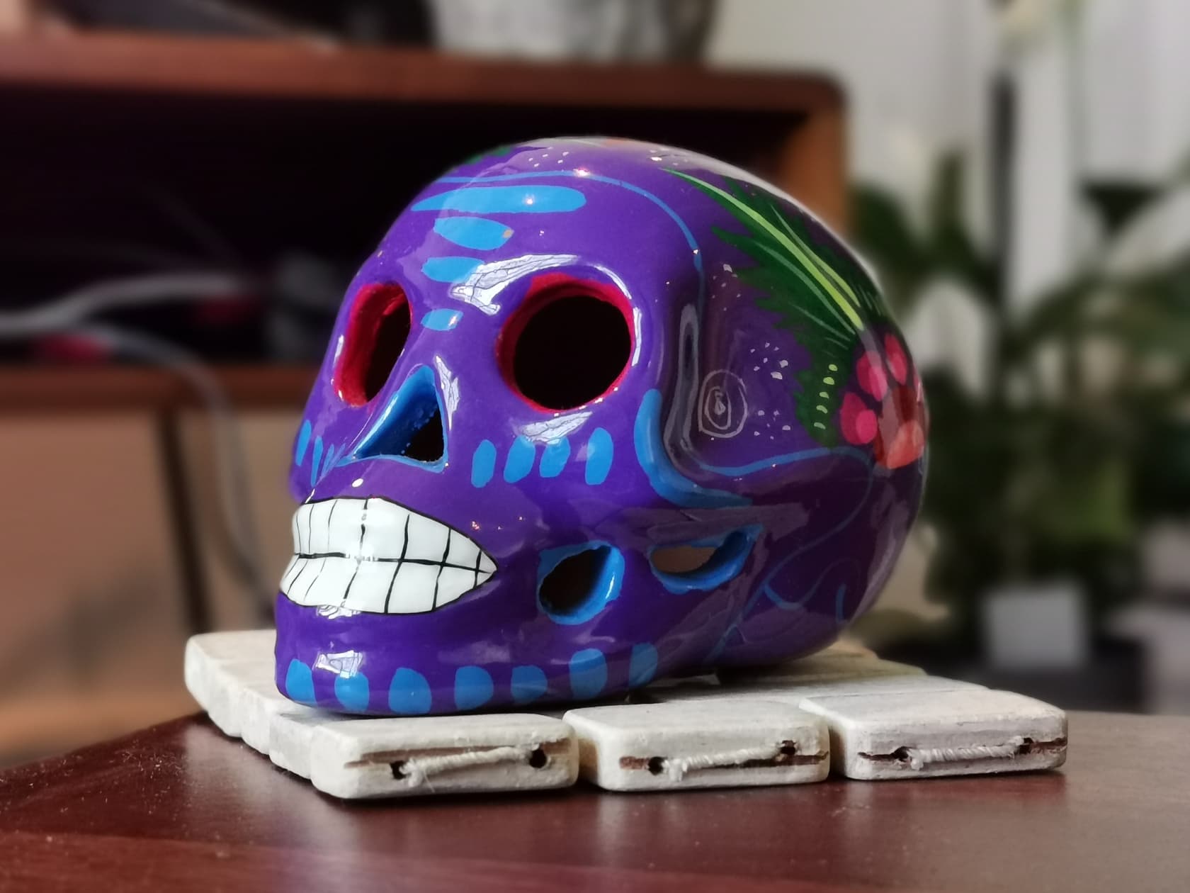 The P30 Pro and Galaxy S10 do a better job at gradually blending in and out of focus, as we can see small amounts of bokeh creep in at the foreground edges. Their results are certainly more realistic. However, both do seem to encounter an error at the top of the skull.