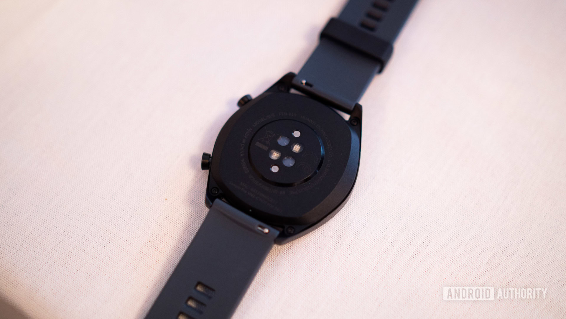 Presumably, to keep the weight down, HUAWEI decided to use plastic on the rear of the HUAWEI Watch GT, which is where you’ll find the heart rate monitor and two pogo pins for the small circular charging dock that uses a USB-C connection. The HUAWEI Watch GT is 50-mm water-resistant so it’s fine to take in the shower or pool.