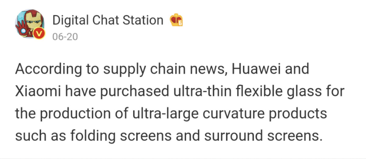 Now, Weibo tipster Digital Chat Station reports that Huawei and Xiaomi have purchased “ultra-thin flexible glass.” Furthermore, the leaker suggests the two brands could use it for products with foldable screens or “surround screens.”