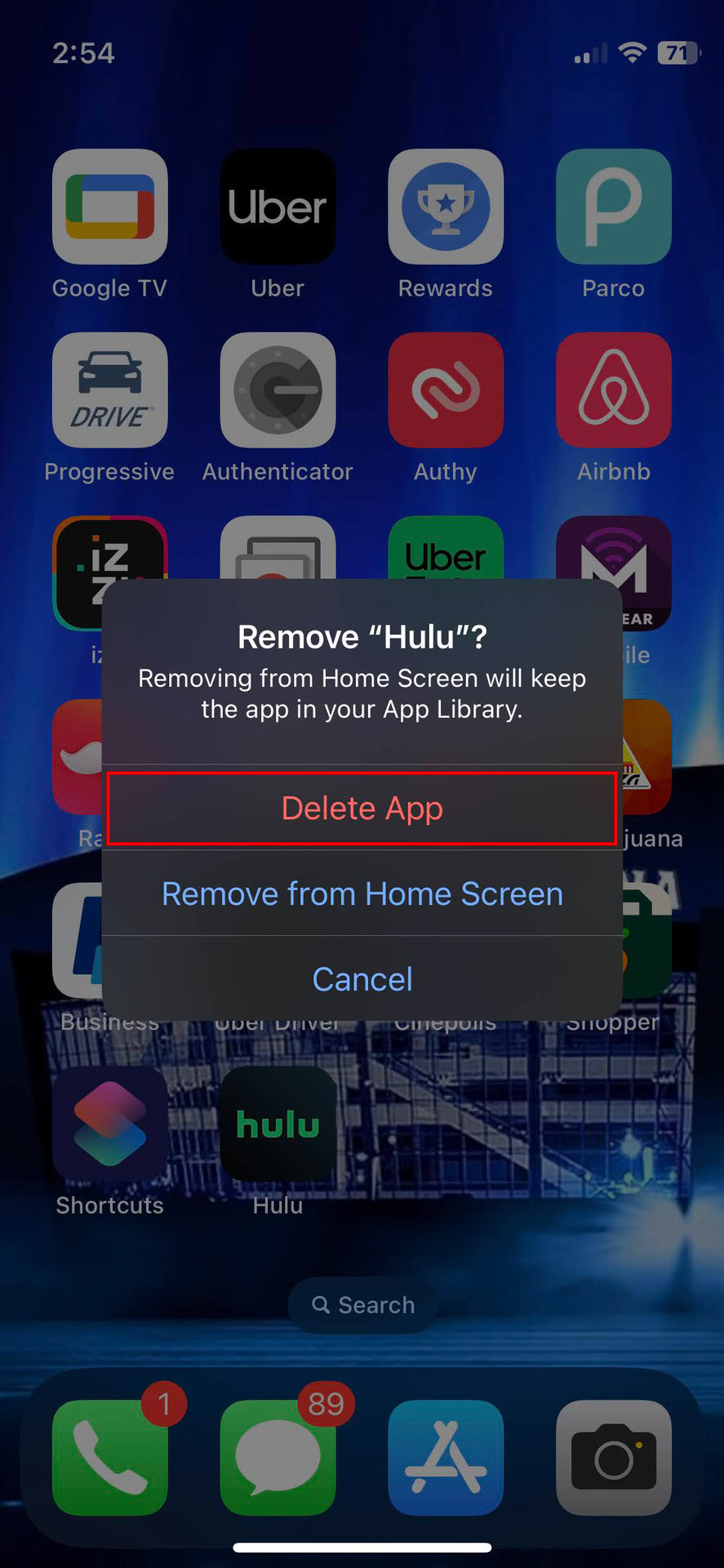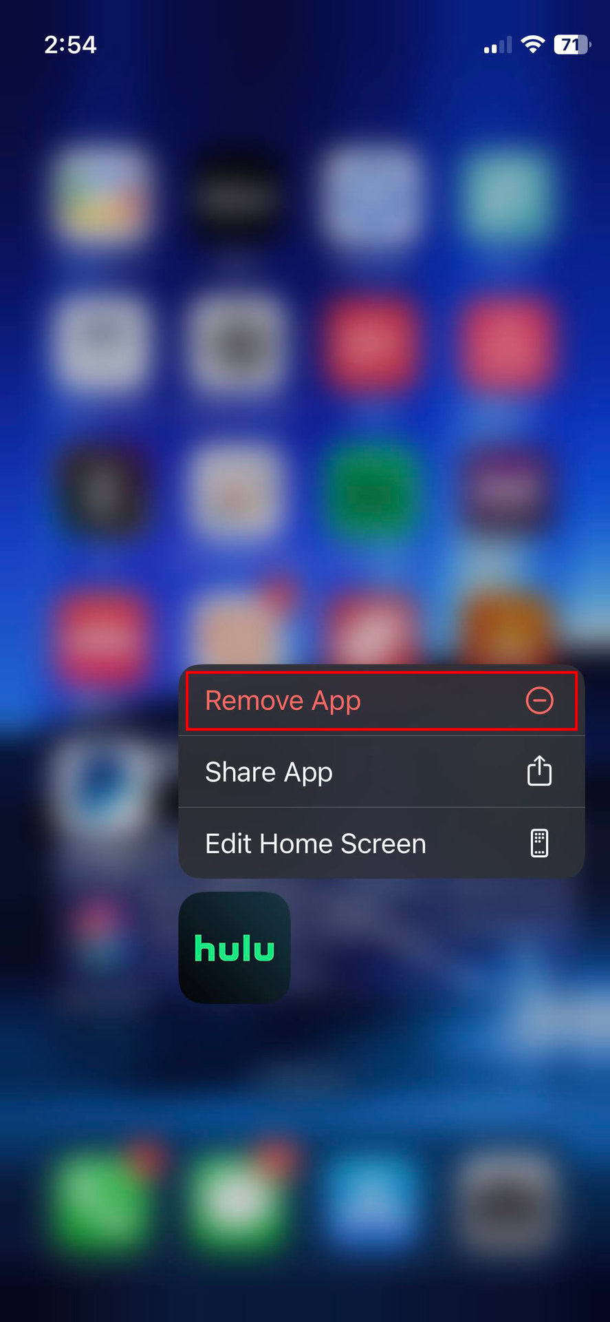- Find the Hulu app, then tap and hold on to it for a few seconds.
