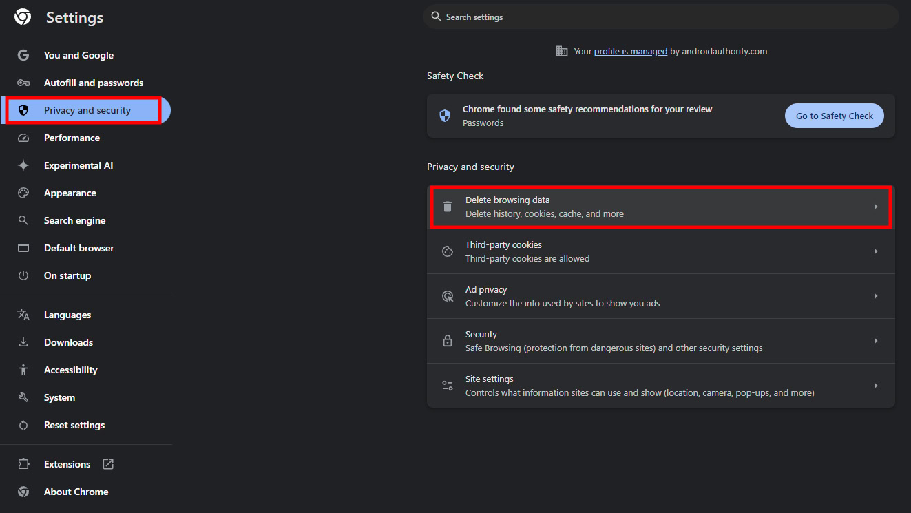 - Select Privacy and security in the left-side column.