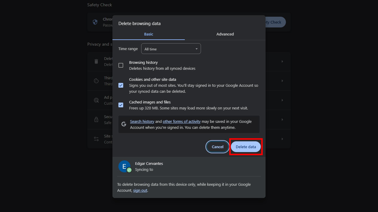 - Check the boxes to select what you want to delete. I like clearing everything if there are serious issues.