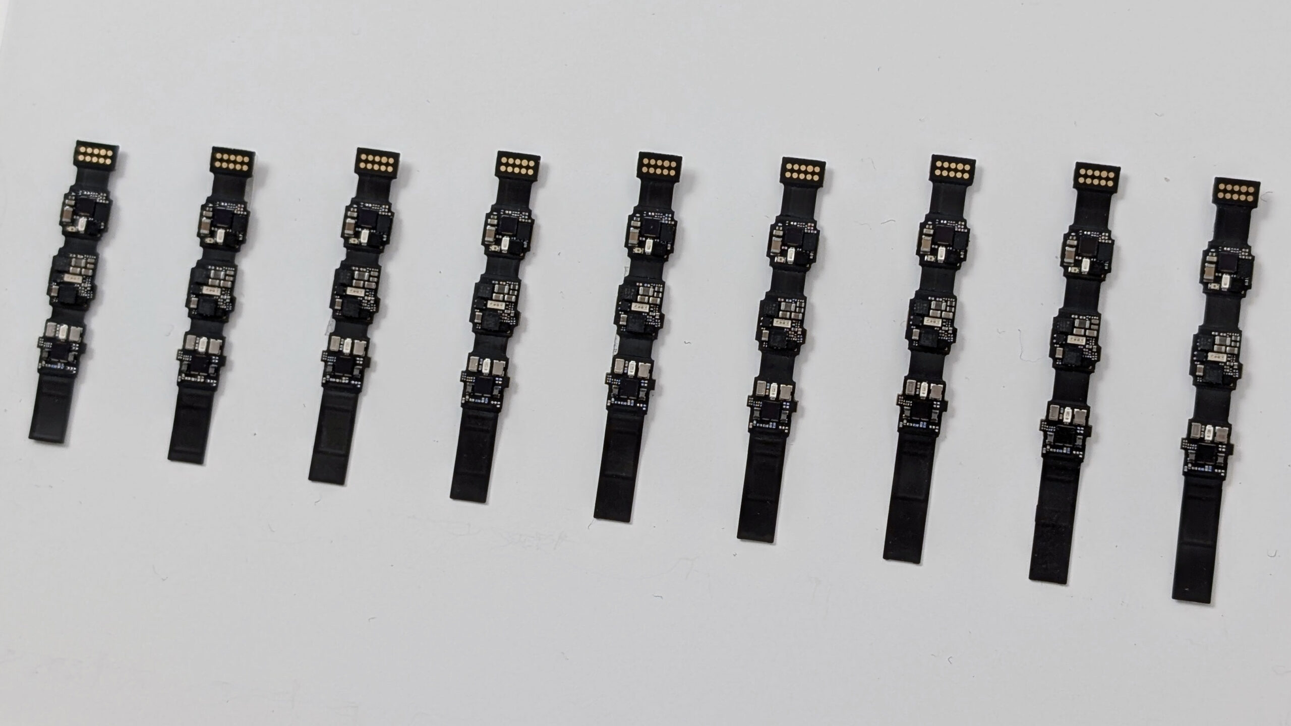 First up, we’ve got the Galaxy Ring (above), and just as Samsung makes the wearable in nine different ring sizes, it has to produce nine variants of the flexible circuit board within — although those longest two on the far right look basically the same size to our eyes. This strip houses all the ring’s sensors, letting them wrap around your finger.