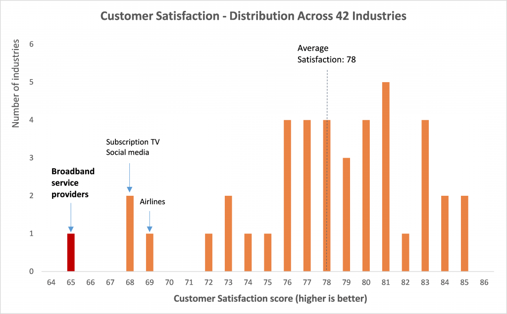 Taylor didn’t name these companies but did make sure to point out in a graph how terrible the customer service rankings were for the unnamed companies that were intentionally letting their networks worsen.