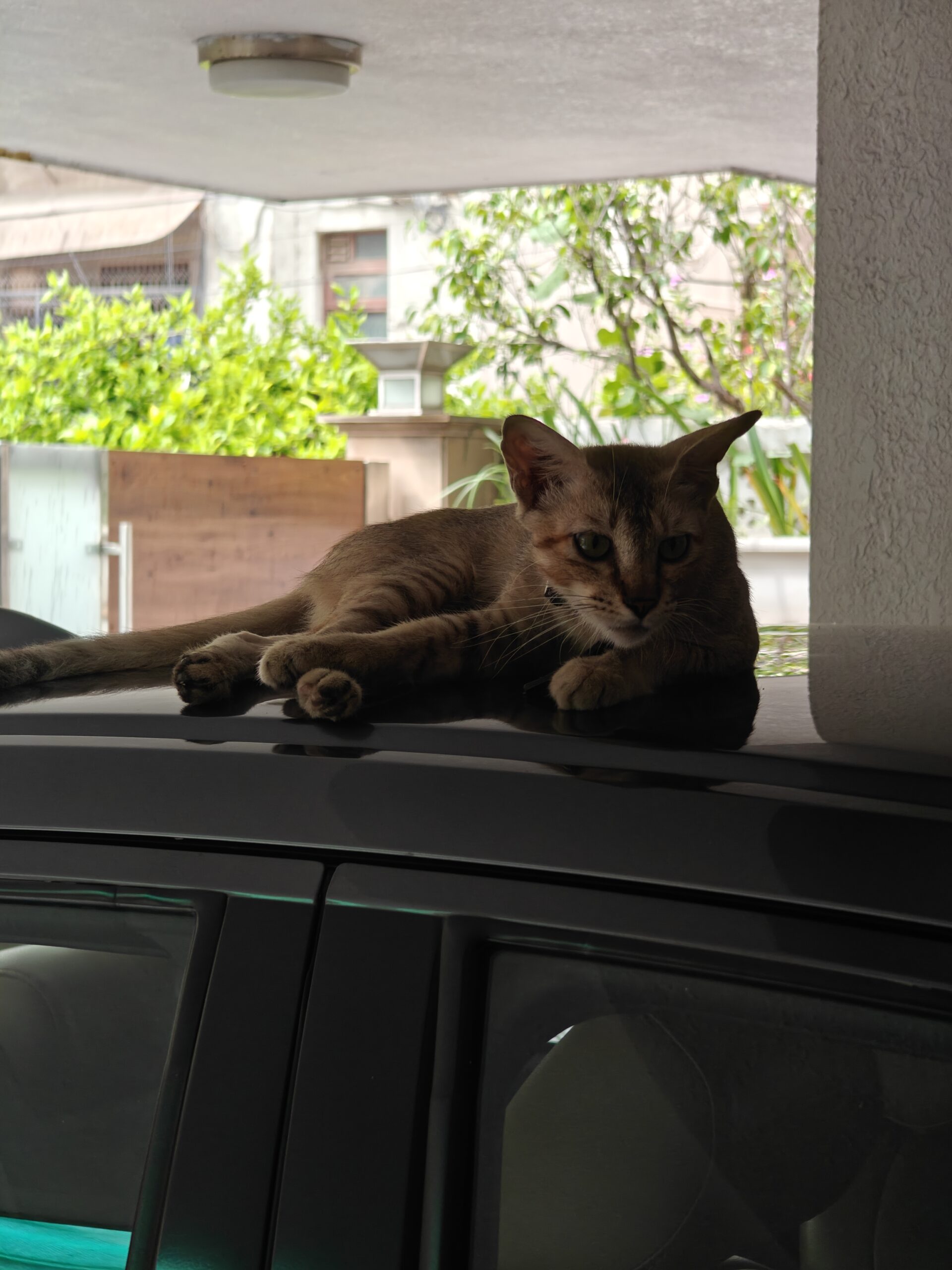 For this next test, I took a random photograph of the neighborhood cat lounging on my car. It’s a close crop with not much to give away that the surface below is a car. Additionally, there’s a lot going on in the background.
