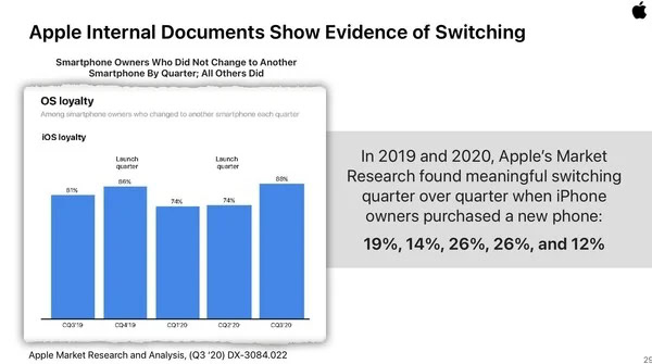 The data (spotted by Android Central) stems from Apple’s own market research and demonstrates how loyal consumers were to the company between 2019 and 2020. However, what’s interesting is how these figures differed throughout the year.