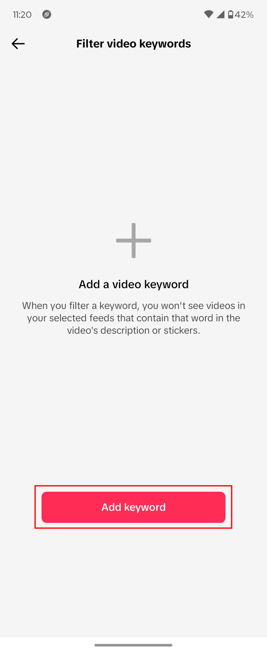 - Select Filter video keywords.