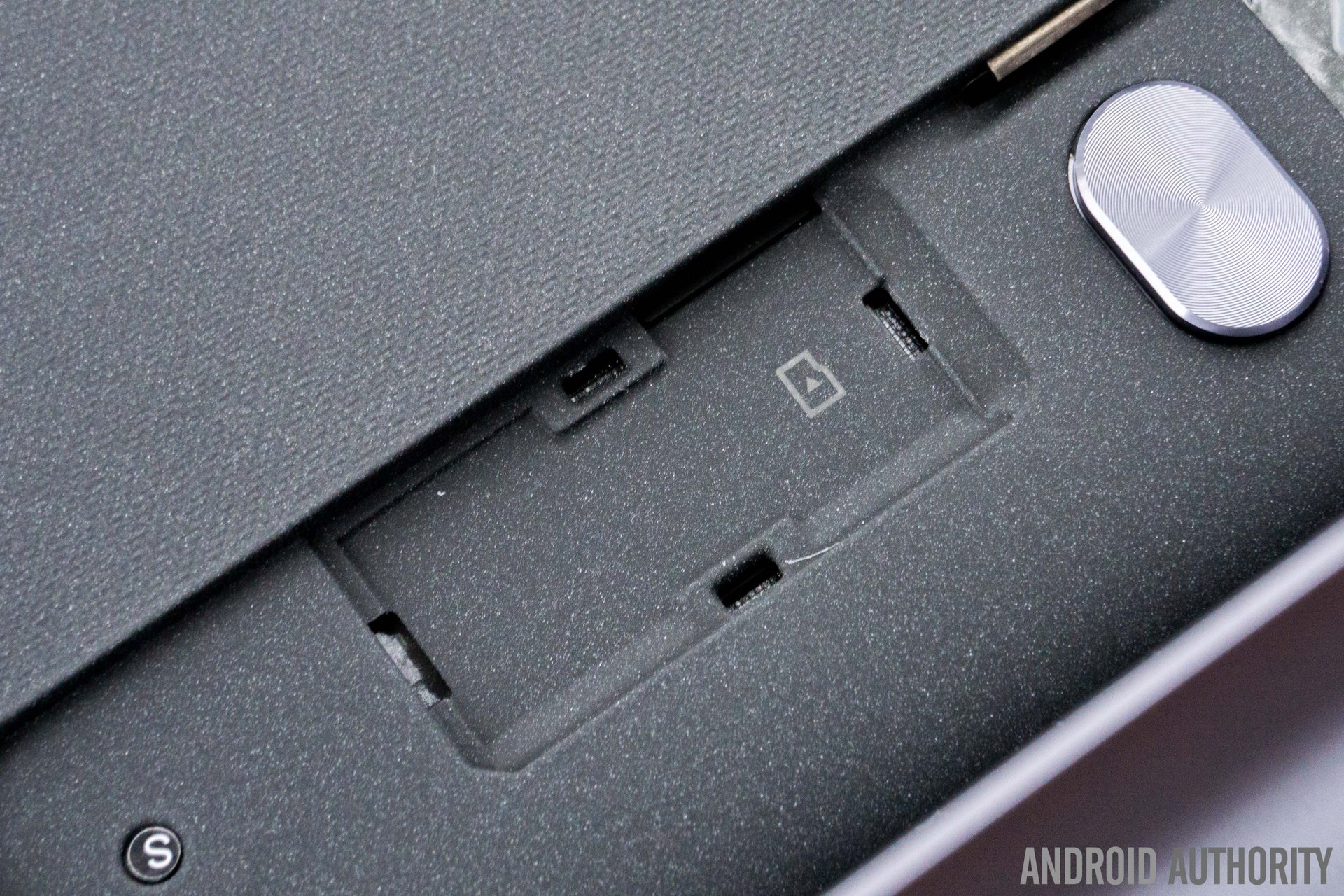 Taking a look around the device, the power button is on one end of the cylinder, with a notification LED ring around it, and along that side, close to the button, is where you will find the microUSB port and the volume rocker. On the opposite end of the cylinder is the headphone jack. Opening the kickstand reveals a plastic cover that houses the microSD card slot. The camera unit is also now a part of the cylinder, and is placed on a rotating hinge, that lets you use it as both a rear and front-facing shooter. Up front is where you will find a dual stereo front-facing speaker setup with Dolby Atmos audio enhancements.