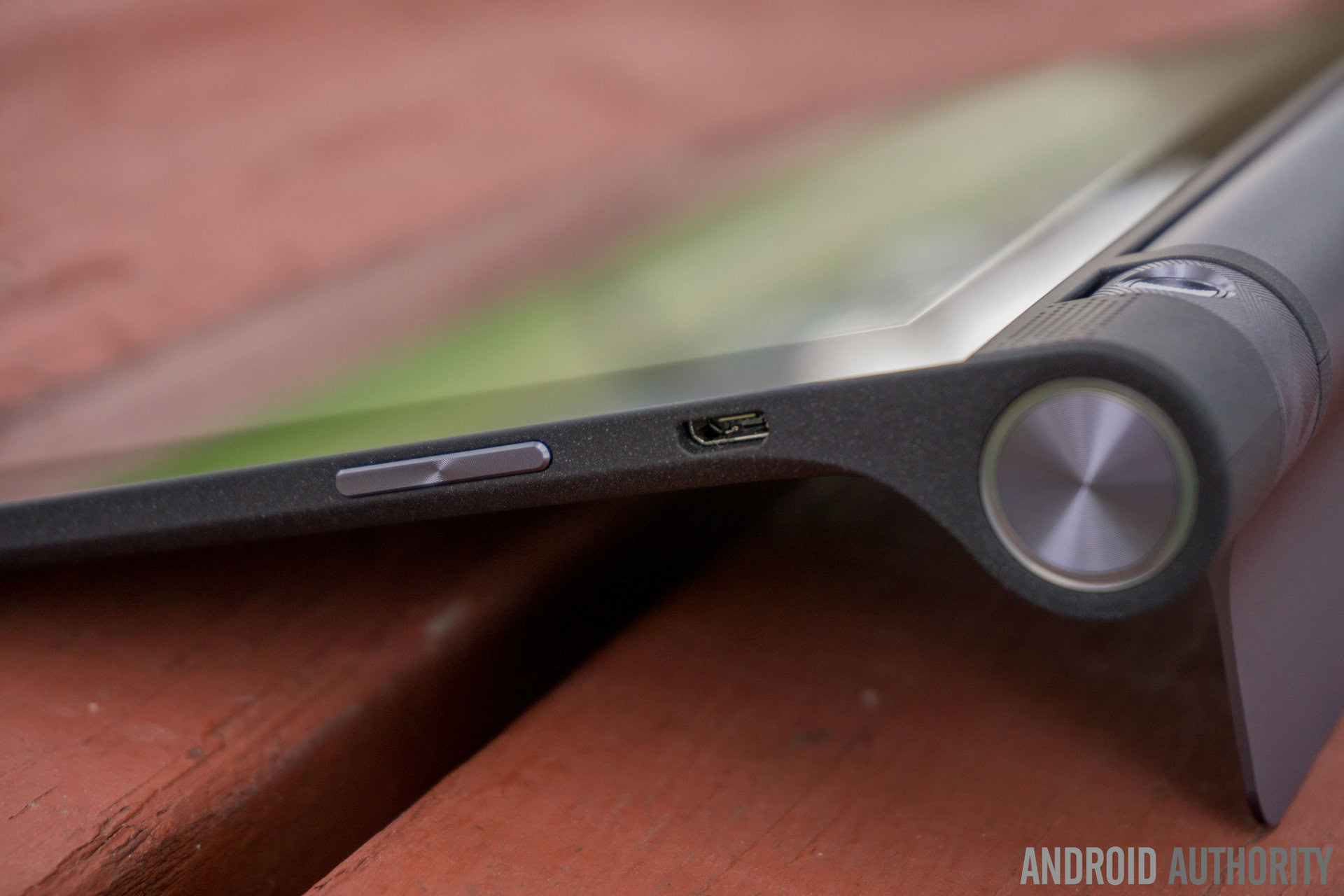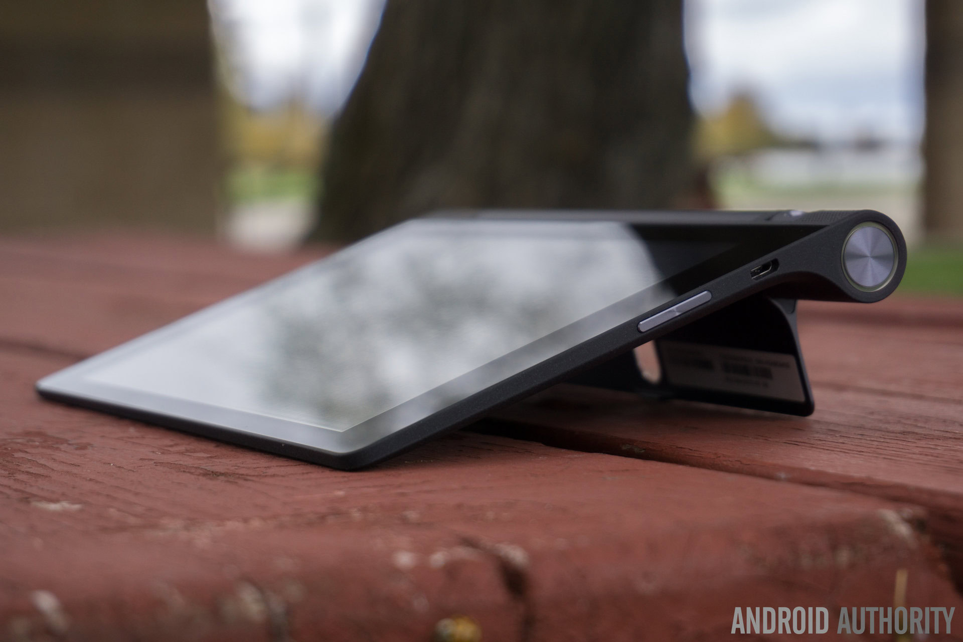 The metal kickstand remains one of the excellent features of the design, but doesn’t offer the multiple positions and angles that are available with its larger sibling, the Yoga Tab 3 Pro. Instead, all you get here is a single position that lets you place the tablet in a stand or tilt mode. You may not get the same amount of versatility from this kickstand, but it still proves to be extremely useful, especially when it comes to media consumption. A button to release the kickstand is now available, and the resulting hole in the stand isn’t just to accommodate the button, but can also be used to hang up the tablet, even if there aren’t going to be a lot of situations where you will want, or need, to hang the device from a nail or rack.