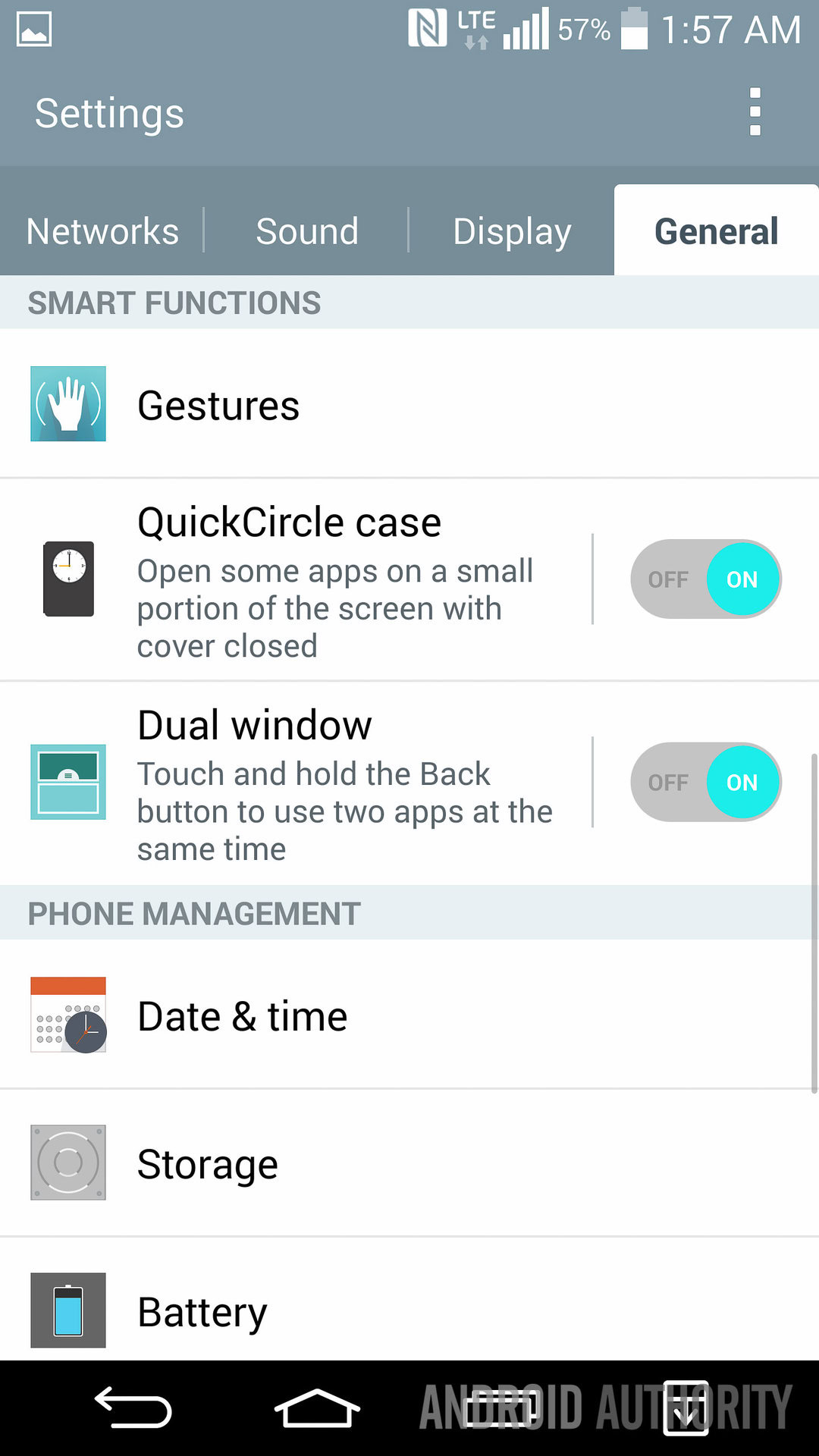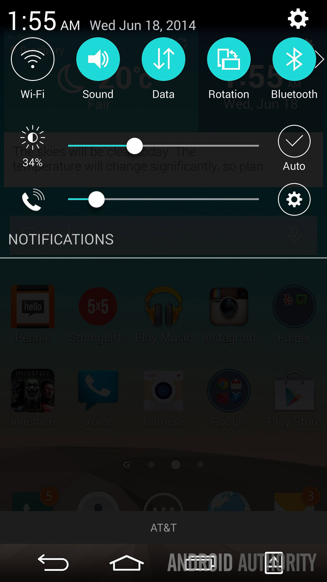 In general, traces of previous Optimus UI iterations are still found, but the redesigned notification dropdown and a much better laid out settings menu look great. Previous LG features like the Q Slide apps return here, but are now hidden behind a shade activated by a quick settings button, and even the brightness and volume sliders can be hidden for an even cleaner notifications menu.