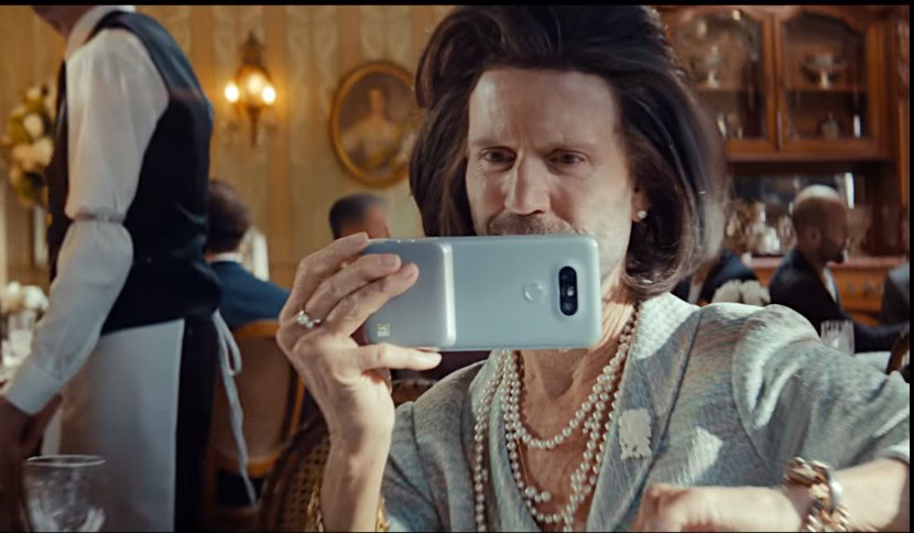 LG already released two short clips, and in one of them Jason Statham is virtually unrecognizable, dressed as a well to do lady enjoying brunch.