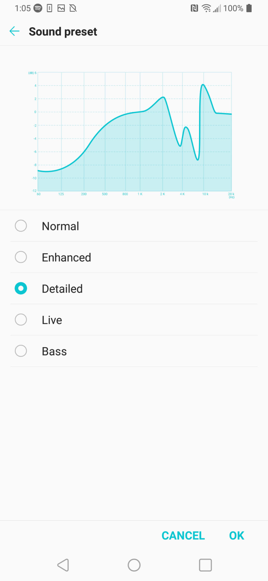This section is a bit more comprehensive and requires the LG V40 to be connected by wire. Doing so enables the Hi-Fi Quad DAC, whereas listening wirelessly only permits 3D sound compensation.