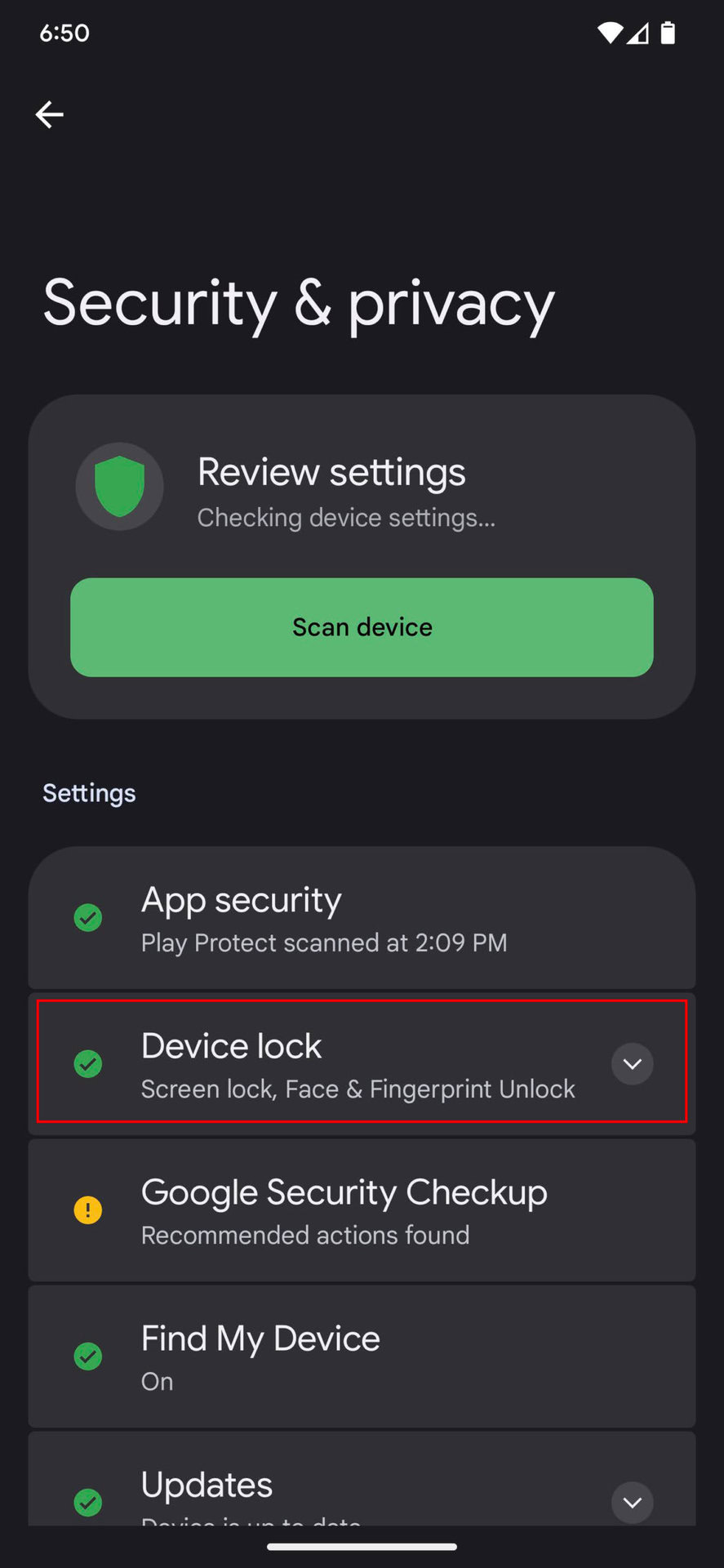 - Tap on Device lock.