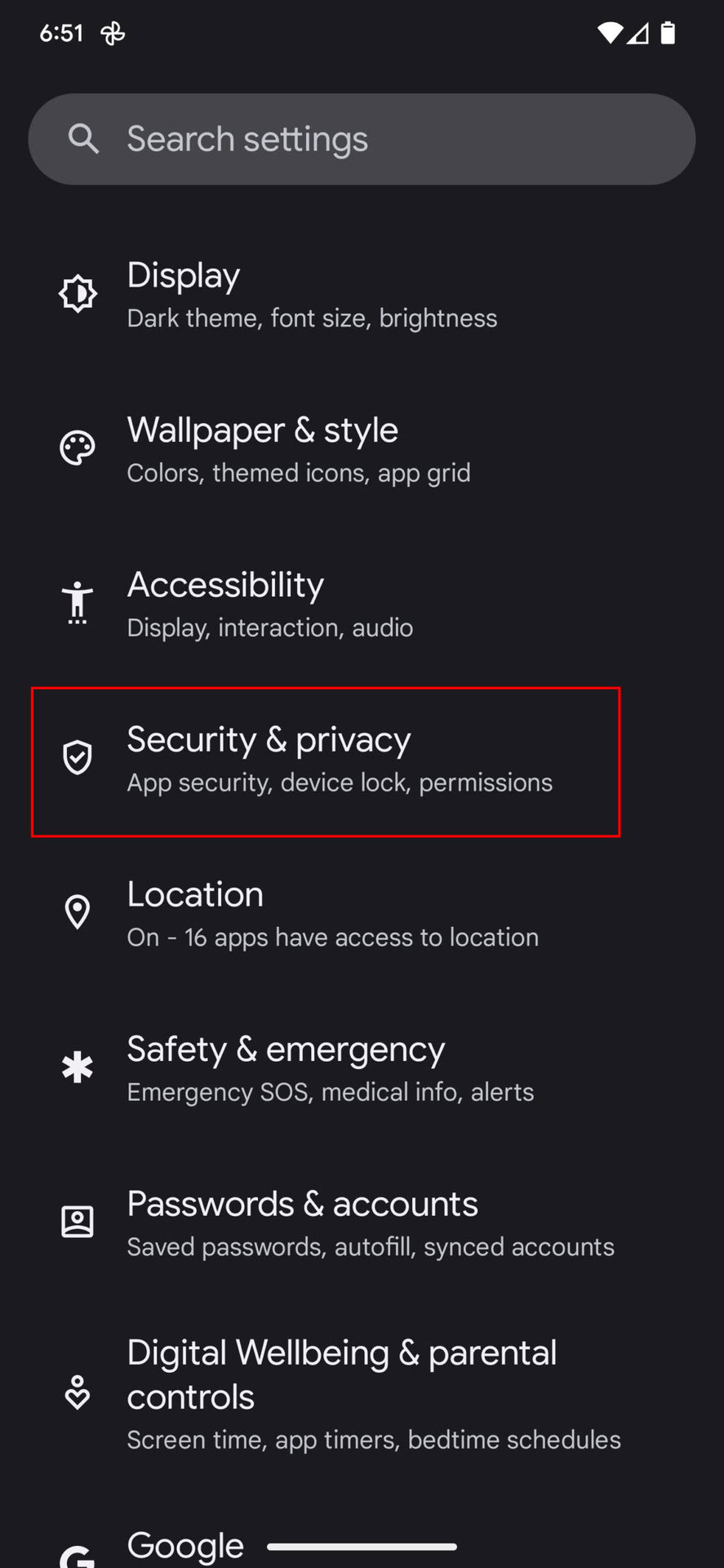 - Go into Security & privacy.