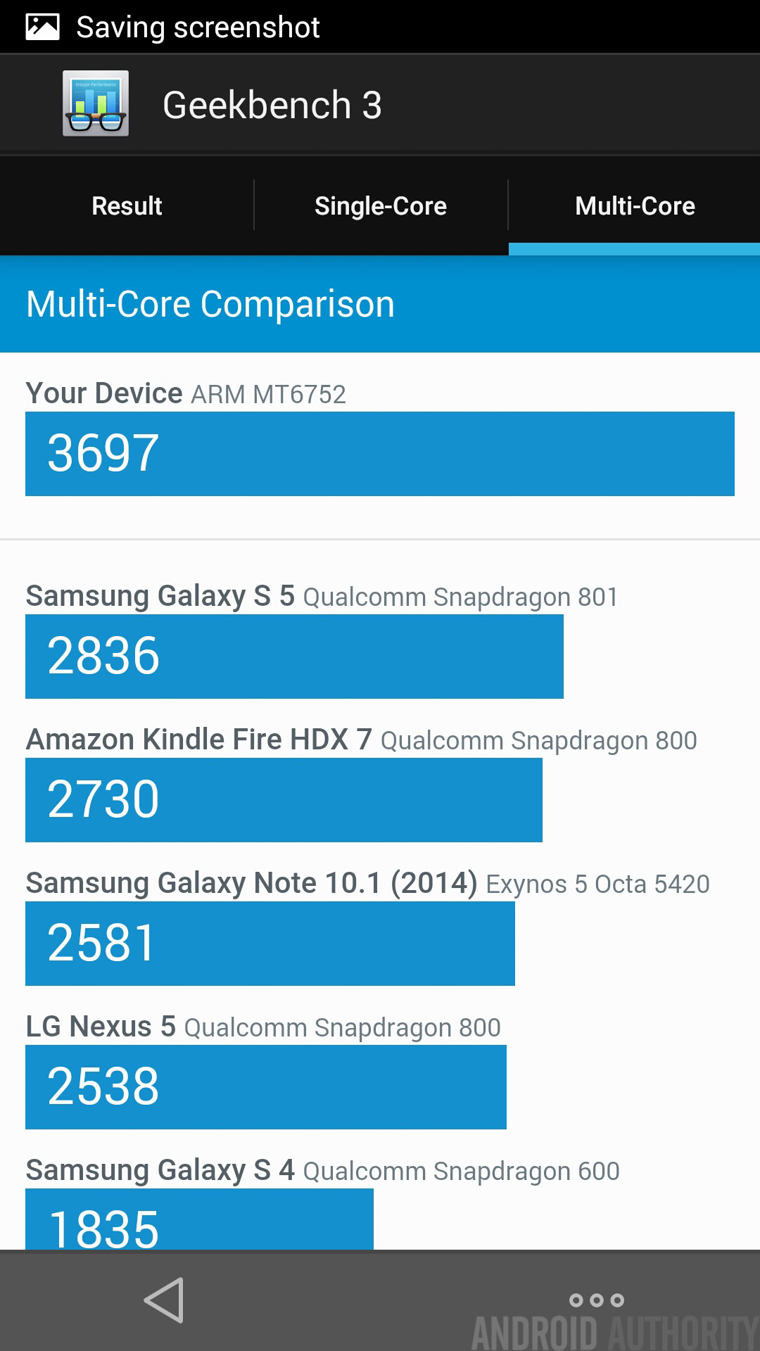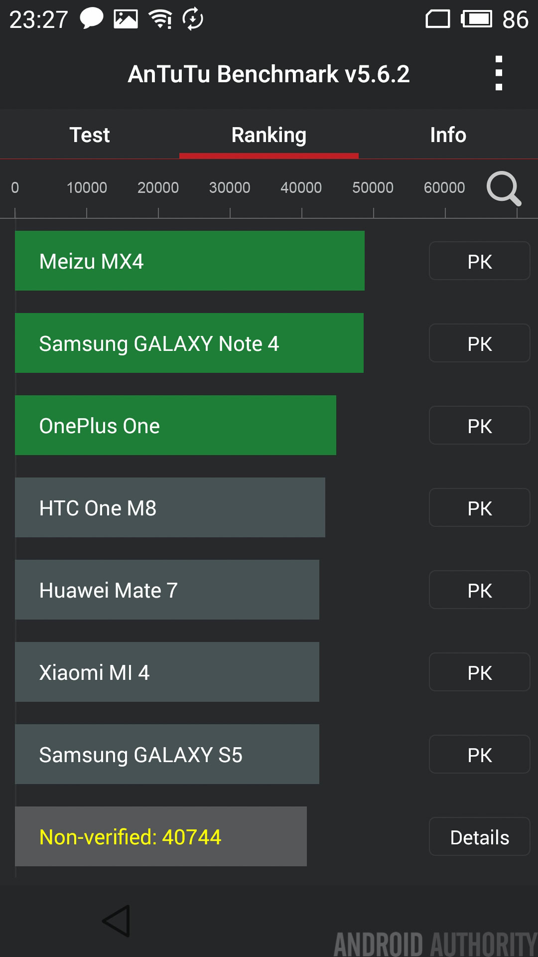Navigating around the various elements of the user interface is an enjoyable experience, and opening and closing applications feels just as quick as what we see with the latest flagships. General tasks are carried out with little issue, and even gaming is handled admirably, with a few instances of slowdown only during the most graphic-intensive of sequences. Benchmark test results may not be the most impressive, as you can see below, but when it comes to real world performance, at the very least, the device feels about on par with flagships that were available last year.