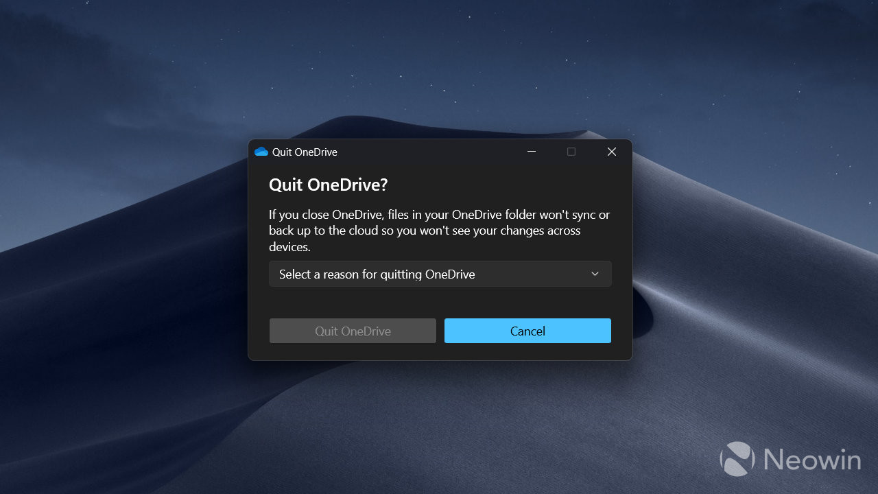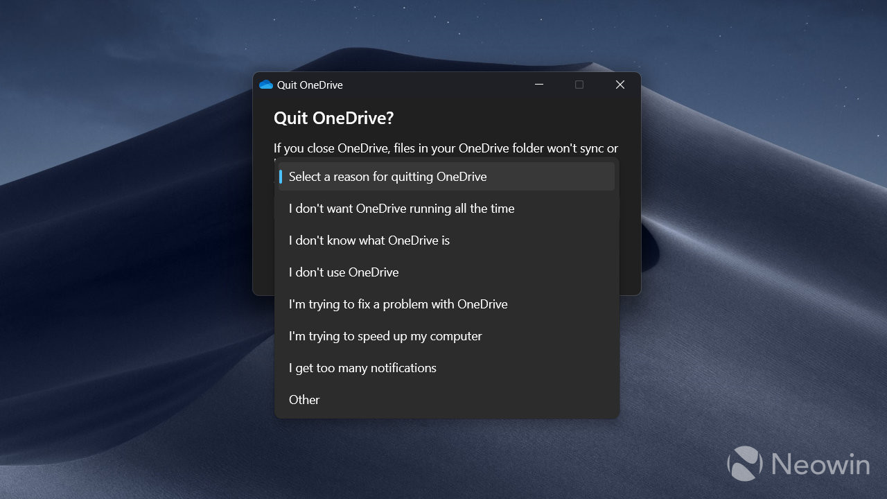 - OneDrive’s latest update on Windows 11 now requires users to provide reasons for quitting the app, without which you cannot close the app.