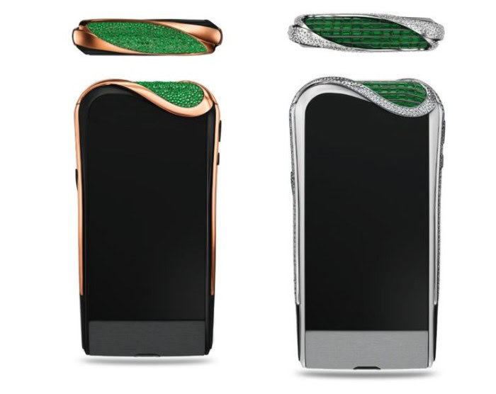 Last year, Vertu launched its most expensive phone called the Signature Cobra. The reason for the name is clear when you look at the device — there’s a freaking snake wrapped around the edges up front. It’s studded with the majority of the 439 rubies you’ll find on the device and also features two emeralds that serve as the snake’s eyes. The Signature Cobra was designed by the French jewelry company Boucheron and assembled by hand in the U.K. Only eight units were made, with each one going for around $360,000.