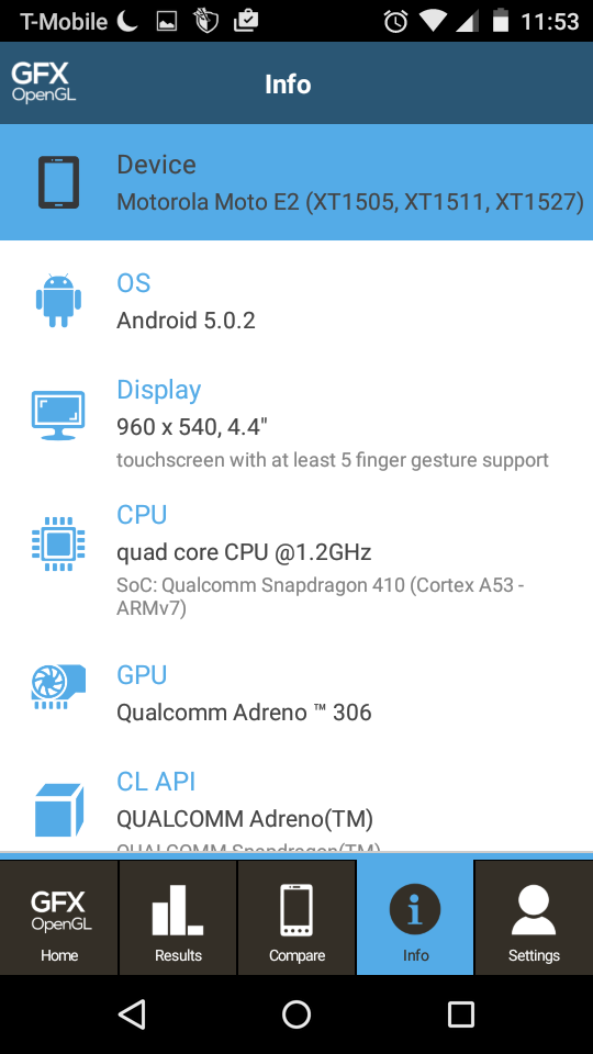 The display has seen a slight increase in size between generations, with the Moto E (2015) featuring a 4.5-inch IPS LCD display, but with the same resolution of 960 x 540, resulting in a pixel density of 245 ppi. The resolution is of course fairly low, and pixels are noticeable with a closer look, especially while gaming. The display is more than capable when it comes to general, everyday tasks though, such as browsing webpages or keeping up on social media. Color saturation, outdoor visibility, and viewing angles are all quite good, and the only really big drawback of having a non-HD display is that you do lose out on HD playback.