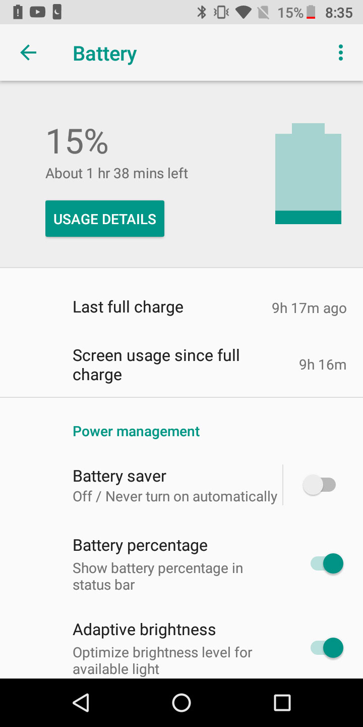 Despite the Moto G6’s relatively small 3,000mAh battery, standby and screen-on time has been great. Even when streaming podcasts and playing Alto’s Odyssey for a couple hours, I got roughly five to six hours of screen-on time every day with this phone. If you only use your phone to make calls and send texts, you’d likely have no problem making it last well into the second day without having to top up.