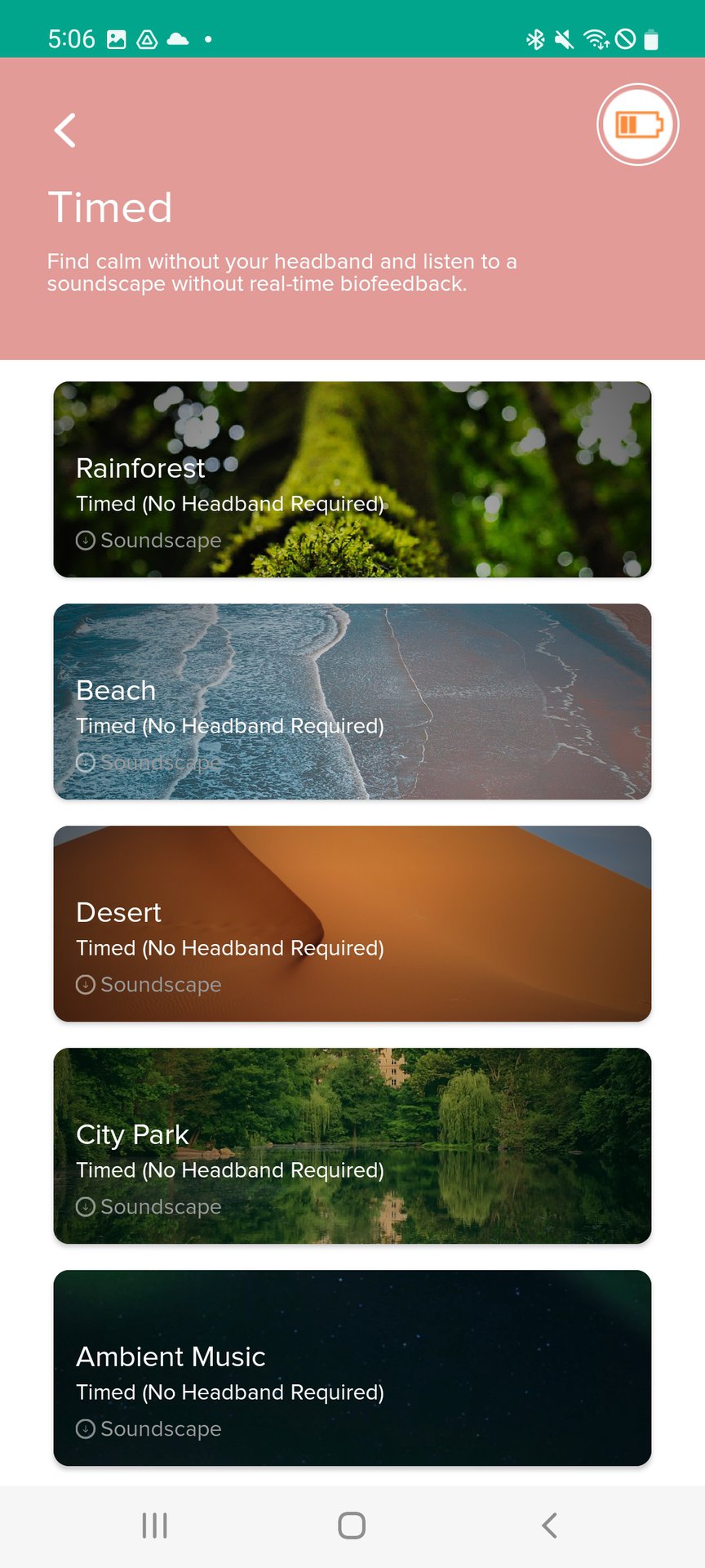 As for the content itself, the Muse app offers plenty. With multiple voices and soundscapes available, I had no problem finding sessions that appealed to me. You can also customize meditation lengths from five minutes to three hours, so it was easy to fit in sessions. Users can choose guided sessions by theme, such as stress or happiness, start assorted programs, explore collections, or focus on mind, heart, body, or breath. You can even complete timed meditations without the headband.