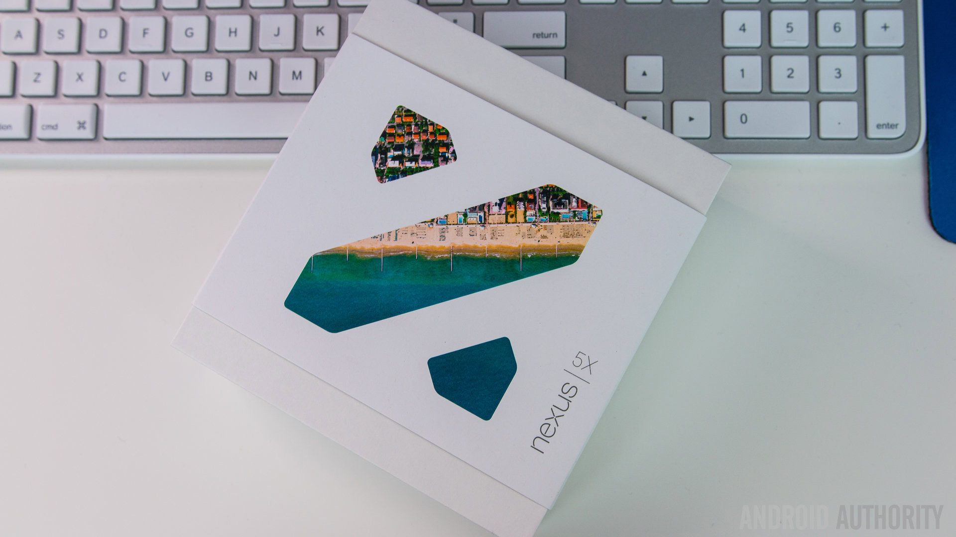 The Nexus 5X comes in a nice square package with a minimalist design featuring a stylized X, setting it apart from the Nexus 6P box, which features the same general design with a stylized P.