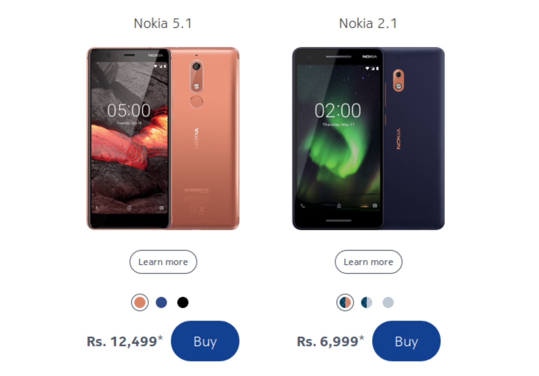According to GSMArena, the prices temporarily showed up on the official Nokia website earlier today, though it looks like they’ve since been pulled. The Nokia 5.1 price was seen as Rs. 12,499 (~$185) while the Nokia 2.1 was caught with an Rs. 6,999 (~$105) price tag.