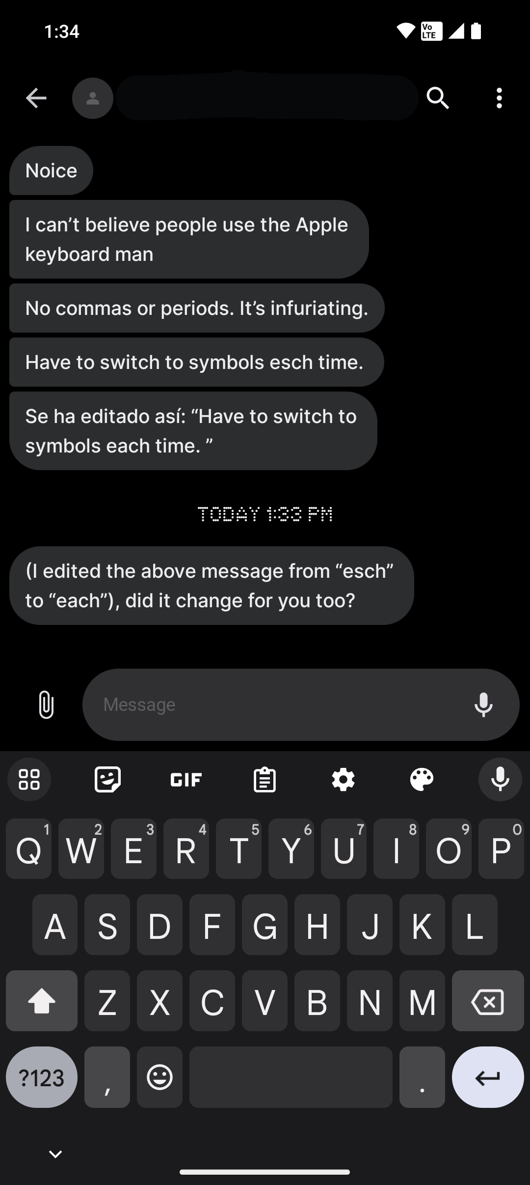 Message editing isn’t an option on the Phone 2, and the system for when an iPhone user edits a message is all sorts of janky. In the screenshot below, you can see that my colleague Rita edited a message and the message I received to indicate the edit arrived in Spanish for some reason.