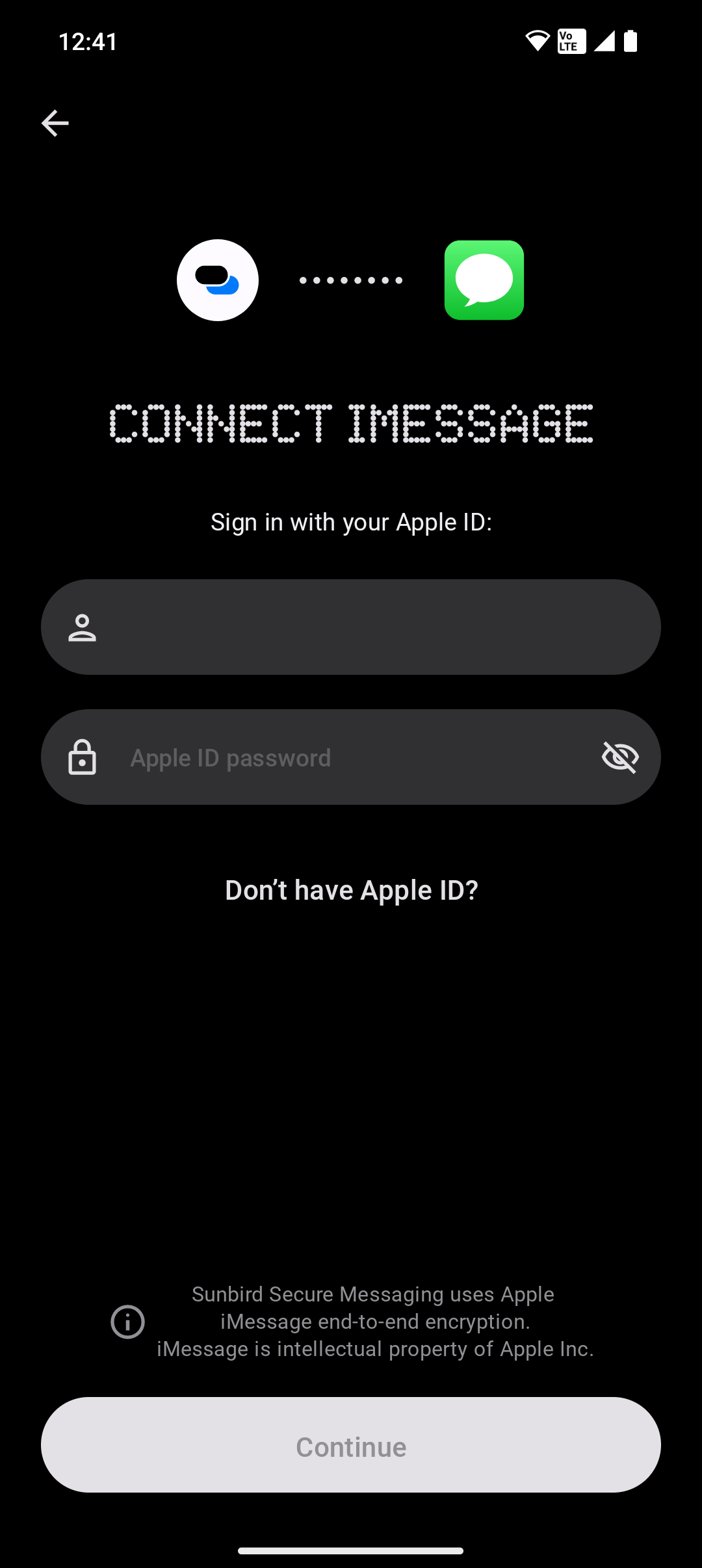 Assuming you don’t care about the risks, logging into Chats with your Apple ID is pretty straightforward. You enter your credentials, get a two-factor code texted to you, confirm that code, and then you’re ready to go.
