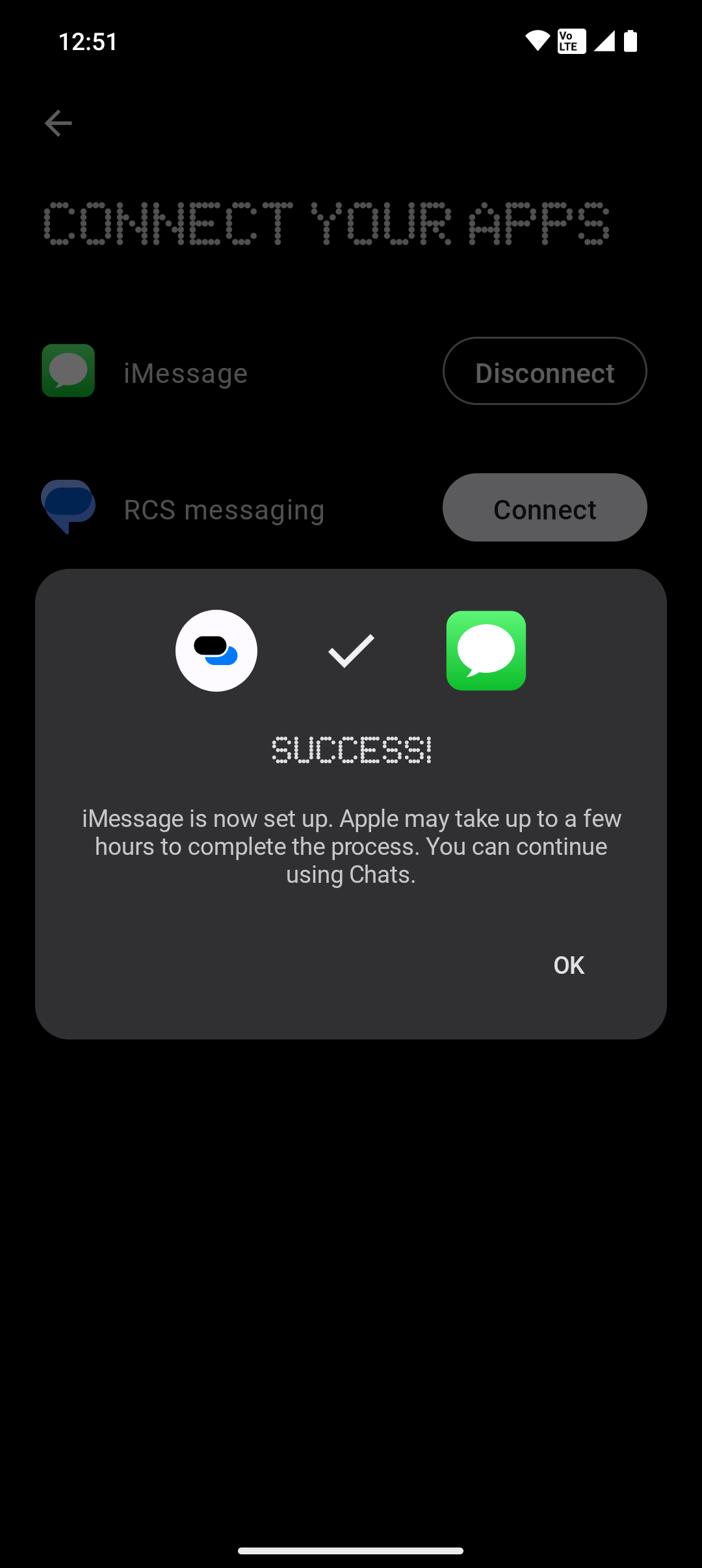 Chats supports iMessage and rich communication services (RCS), the same standard you get with Google Messages. In fact, what you use with Chats is Google Messages, just with your conversation information ported to Chats. This, theoretically, would enable you to use Chats as your solitary messaging app for both iMessage and RCS conversations on the Phone 2. I won’t be touching on RCS support in this article, though, because I couldn’t get it to work at all.