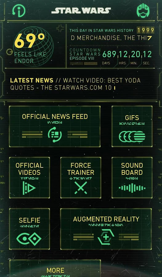 The official Star Wars app brings the light side and dark side to your mobile device