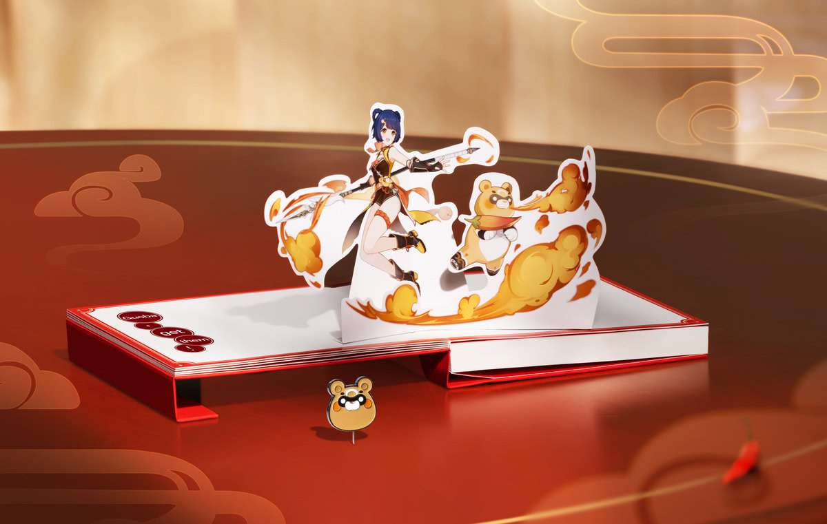 As for the bento-inspired Xiangling collector’s box, you’ll find a handful of goodies centered around the Liyue native and her companion Guoba. These items include a collaboration book that offers a 3D effect of Guoba’s eyes, Xiangling stickers, character cards, and a SIM ejector resembling Guoba.
