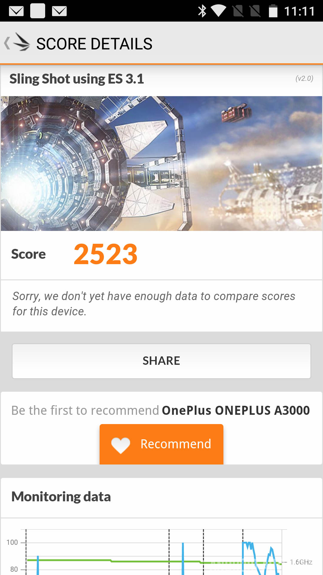 How does the processing package compare to other flagships? Running the usual benchmarks, we can see that the OnePlus 3 scores 141955 in the AnTuTu Benchmark, which is higher than the 140955 and 129375 scored by the Galaxy S7 Active and Galaxy S7 respectively. Moving on to GeekBench 3, it scores 2378 and 5465 for the single core and multi score scores respectively, which is again higher than the 2269 and 5156 scored by the Galaxy S7. Lastly, a 3D Mark score of 2523 shows the Adreno 530 is no slouch and is on par with the 2528 and 2535 scored by the Galaxy S7 and Galaxy S7 Active respectively.