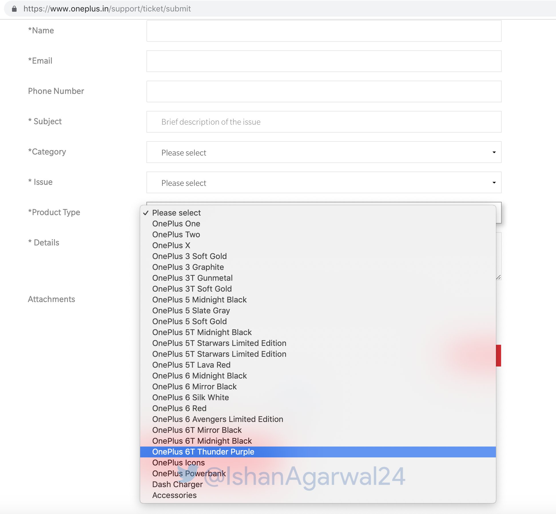 The first bit of evidence for this stems from a now-removed listing of OnePlus devices on an official support page, first caught by Ishan Agarwal. If one clicked a drop-down box to see a list of OnePlus products, an option for something called a OnePlus 6T Thunder Purple would show.